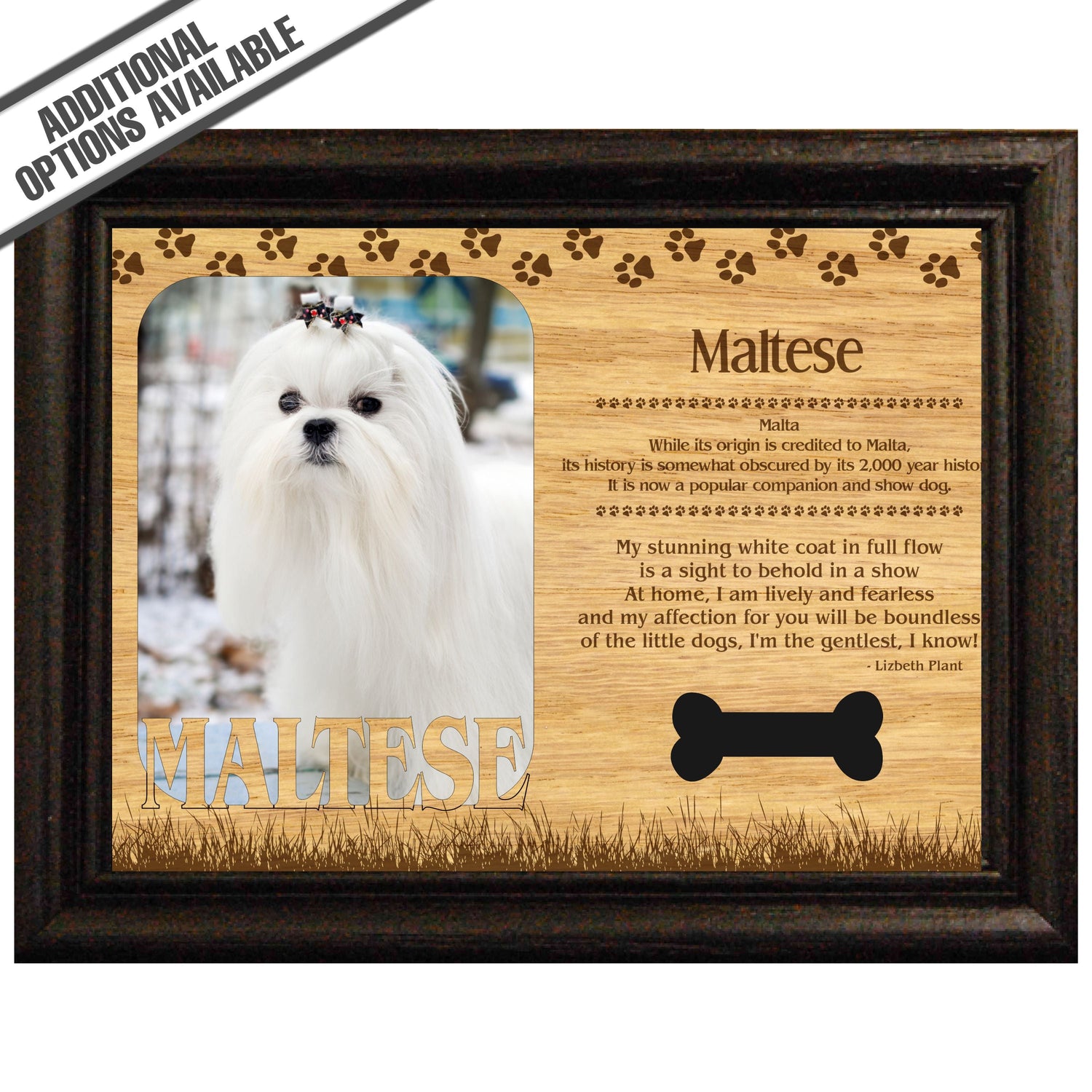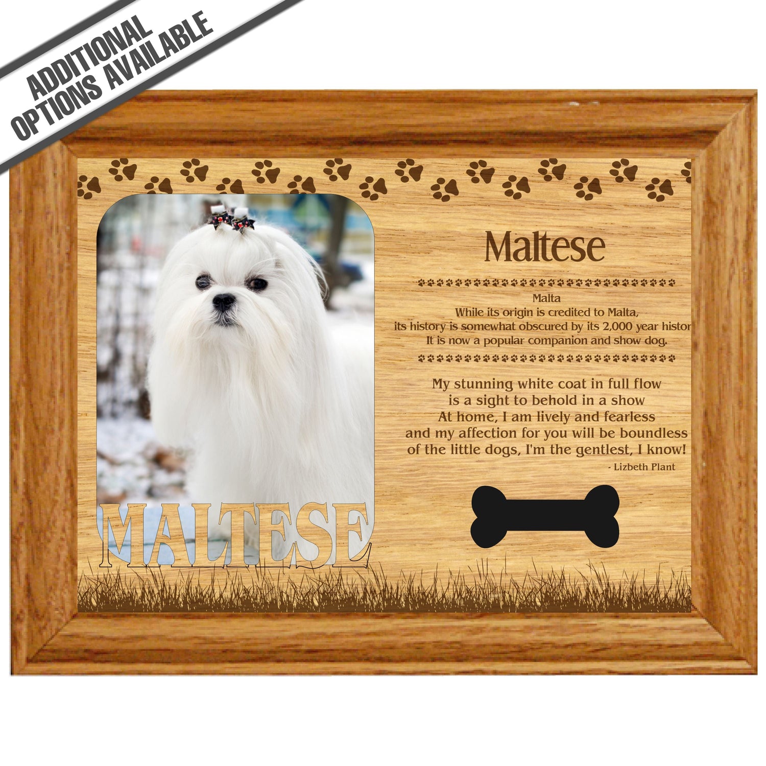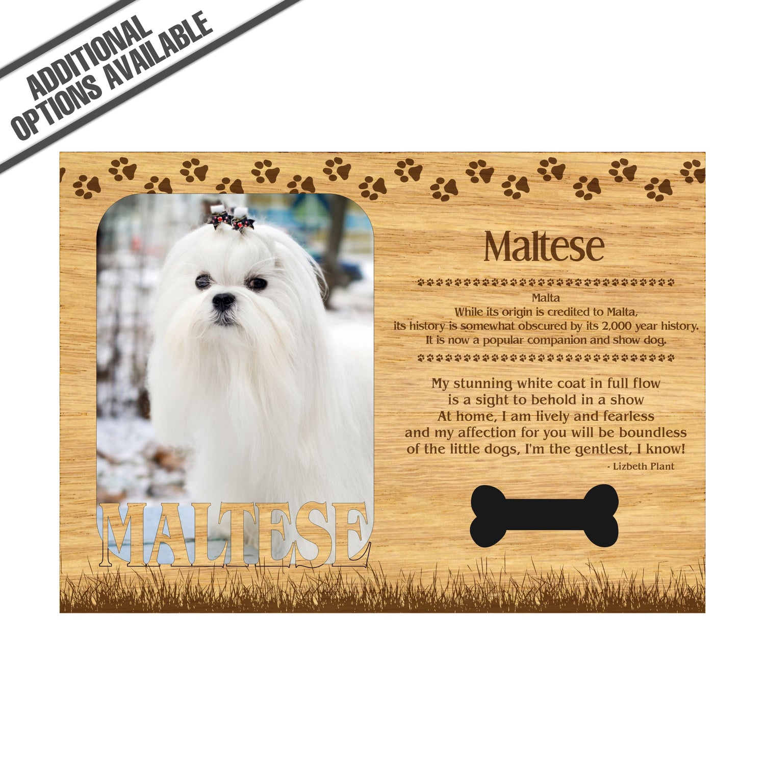 Celebrate the unique bond between you and your dog with our exquisite "Maltese" wooden photo frame. This beautifully crafted wooden frame showcases engraved paw print, capturing the essence of your furry friend in a stylish and heartwarming way. Perfect for displaying your favorite photo, this frame not only serves as a cherished keepsake but also highlights the playful and loyal personality traits of the Maltese. A thoughtful gift for dog lovers, it adds a personal touch to any home decor while honoring the love and companionship of your pet. Our FrameWorks magnetic mattes are the best way to accentuate any picture. Prefect for a fridge, locker, file cabinet and more, with a strong magnetic backing. Our FrameWorks material is lightweight making it a great souvenir to pack or mail.