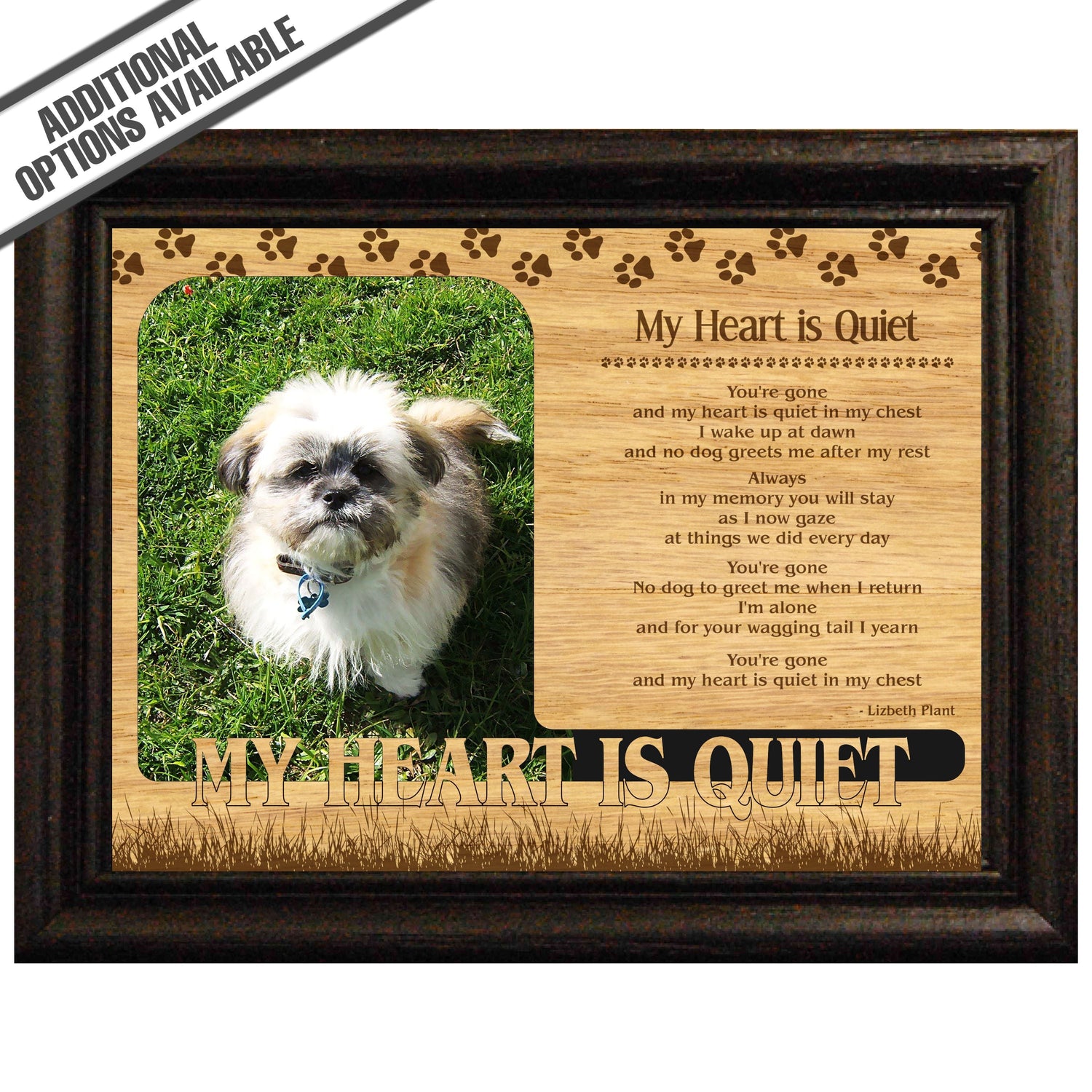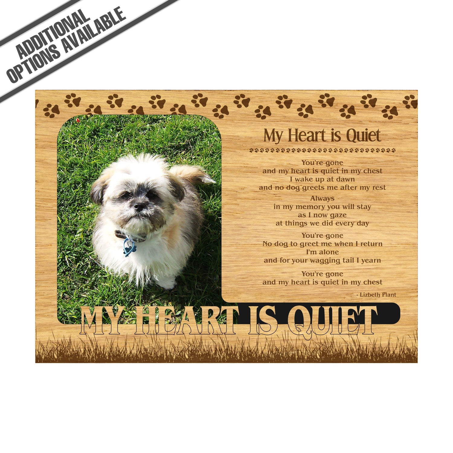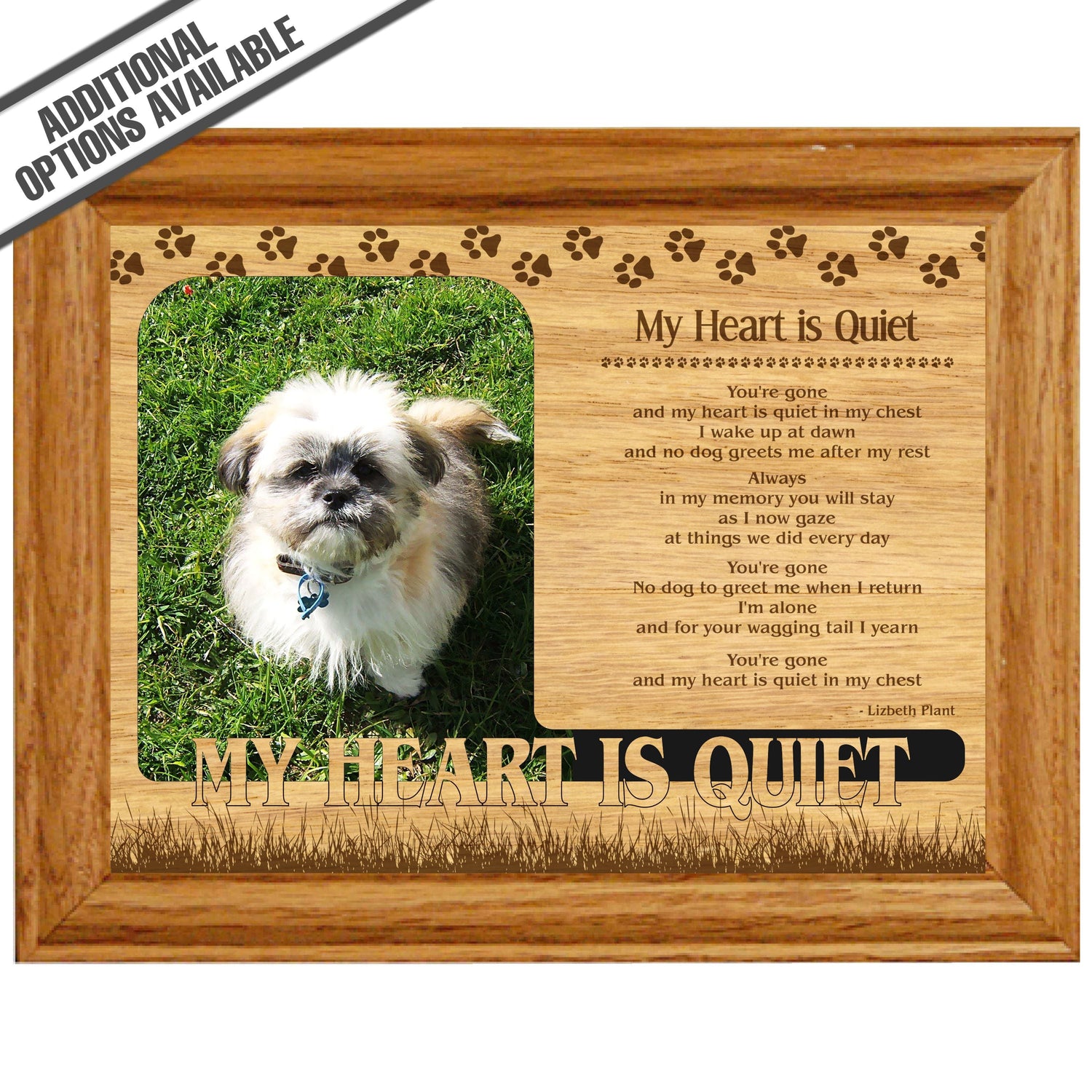 Celebrate the unique bond between you and your dog with our exquisite "My Heart is Quiet" wooden photo frame. This beautifully crafted wooden frame showcases engraved paw print, capturing the essence of your furry friend in a stylish and heartwarming way. Perfect for displaying your favorite photo, this frame not only serves as a cherished keepsake but also highlights the playful and loyal personality traits of your loving dog. A thoughtful gift for dog lovers, it adds a personal touch to any home decor while honoring the love and companionship of your pet. Our FrameWorks magnetic mattes are the best way to accentuate any picture. Prefect for a fridge, locker, file cabinet and more, with a strong magnetic backing. Our FrameWorks material is lightweight making it a great souvenir to pack or mail.