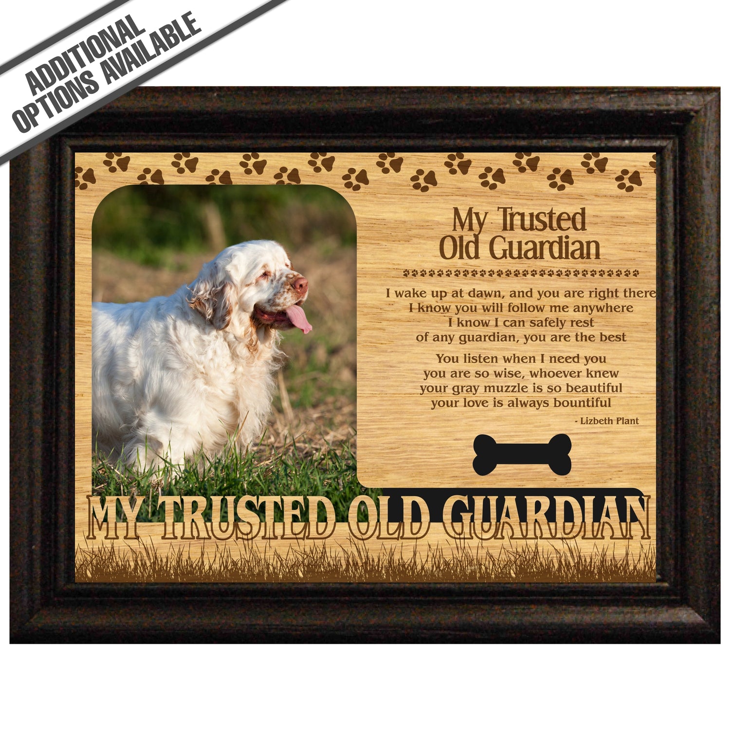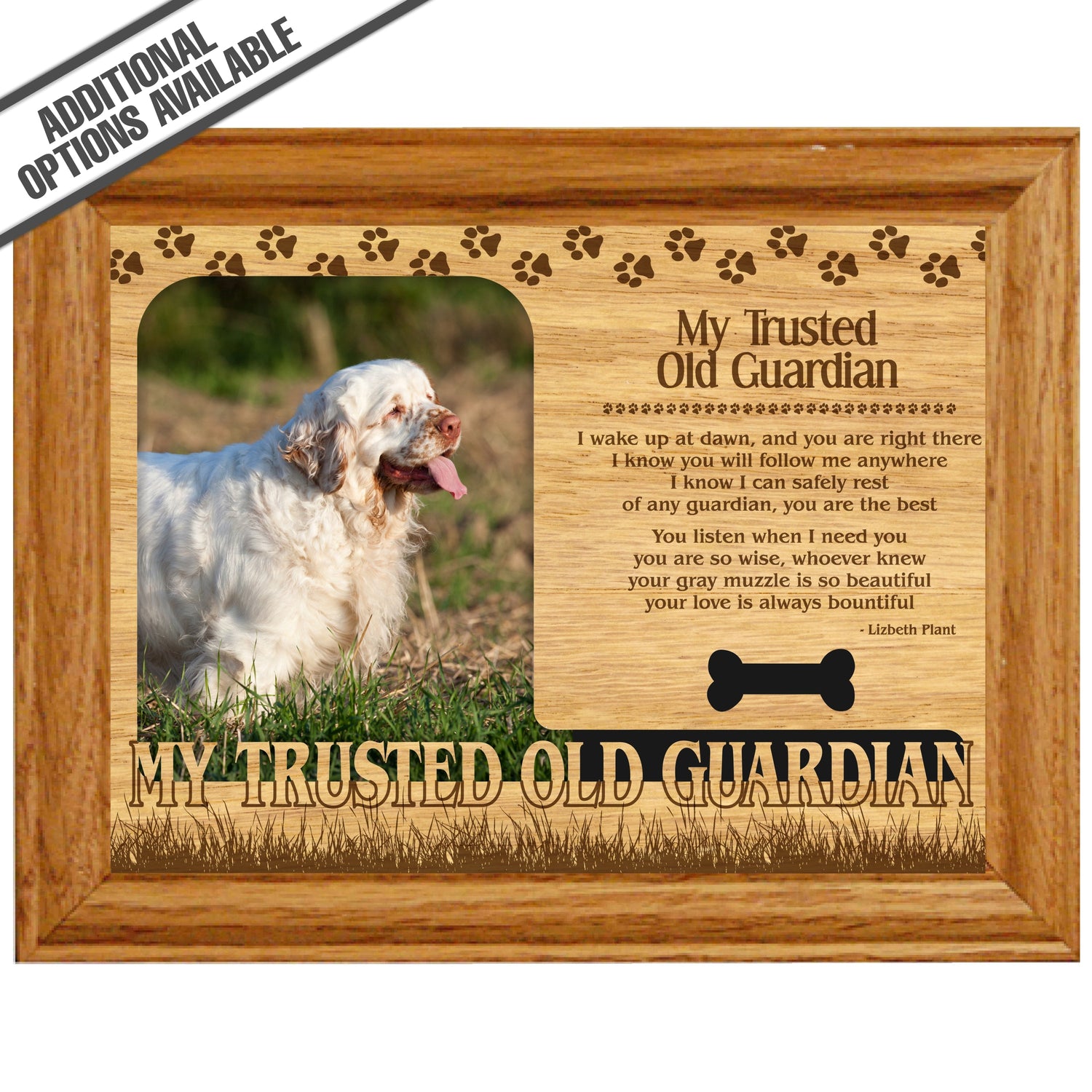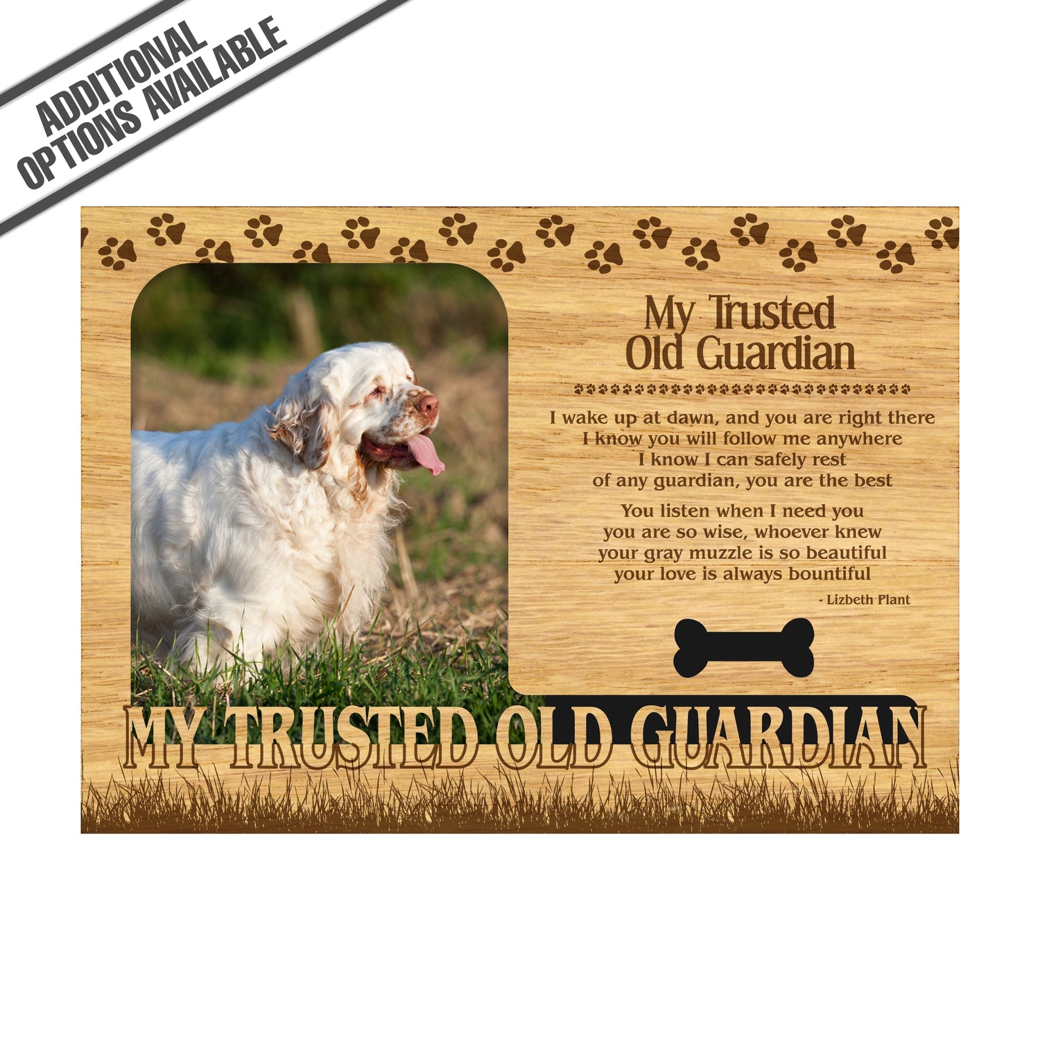 Celebrate the unique bond between you and your dog with our exquisite "My Trusted Old Guardian" wooden photo frame. This beautifully crafted wooden frame showcases engraved paw print, capturing the essence of your furry friend in a stylish and heartwarming way. Perfect for displaying your favorite photo, this frame not only serves as a cherished keepsake but also highlights the playful and loyal personality traits of your loving dog. A thoughtful gift for dog lovers, it adds a personal touch to any home decor while honoring the love and companionship of your pet. Our FrameWorks magnetic mattes are the best way to accentuate any picture. Prefect for a fridge, locker, file cabinet and more, with a strong magnetic backing. Our FrameWorks material is lightweight making it a great souvenir to pack or mail.