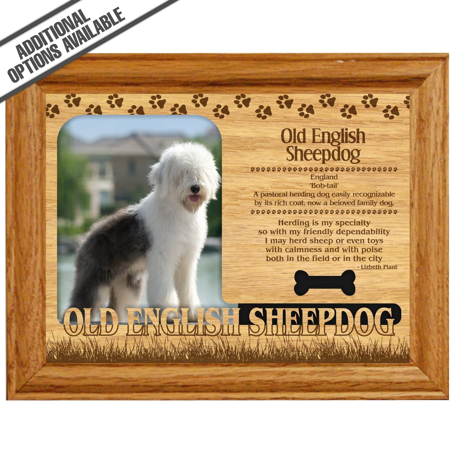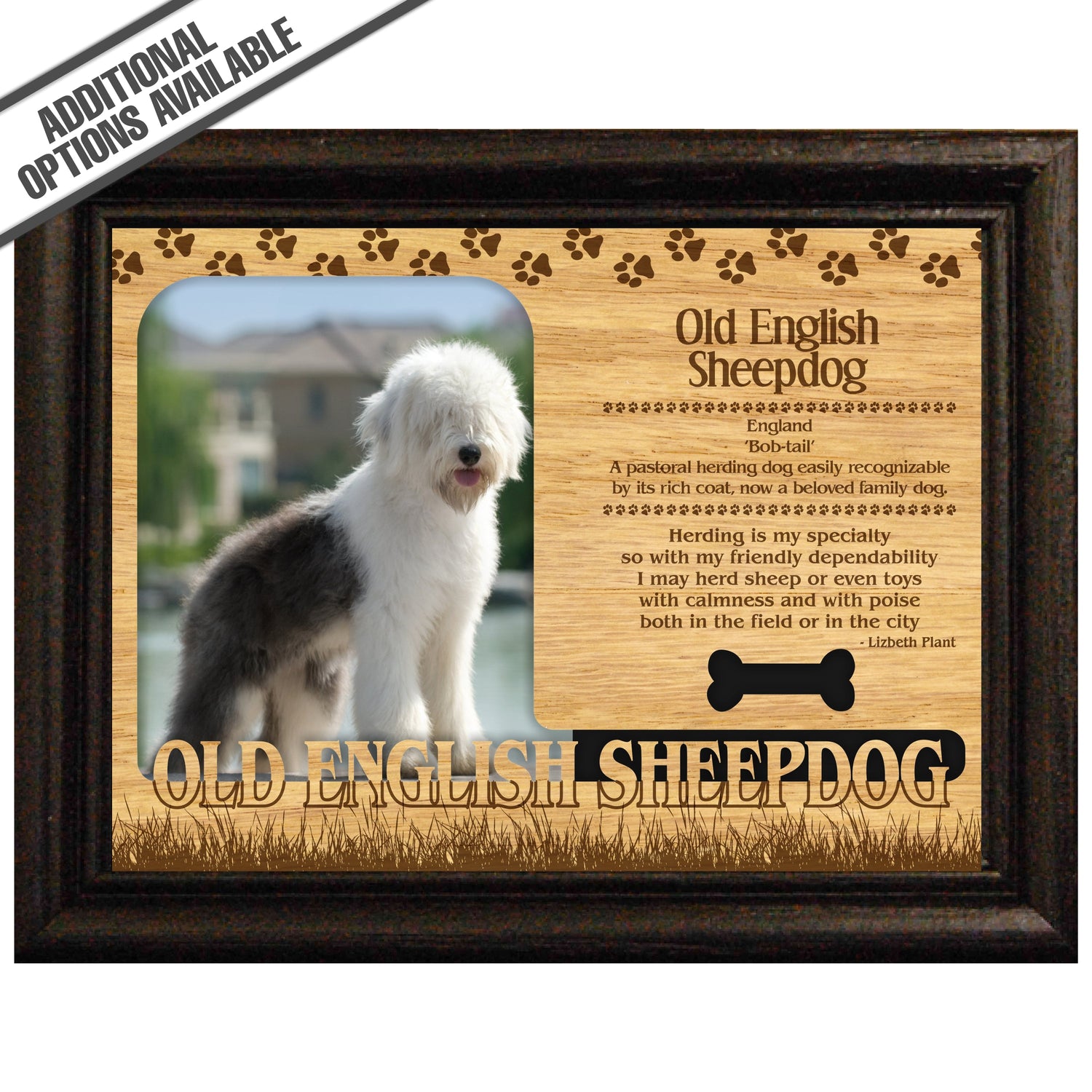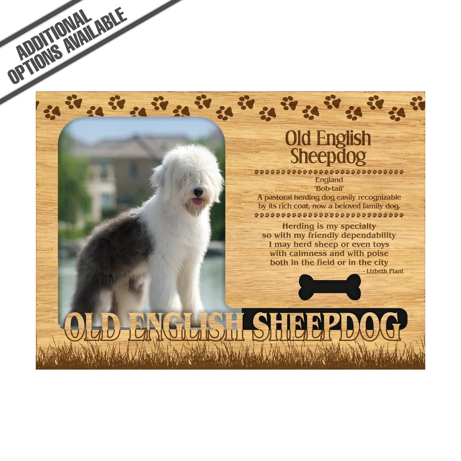 Celebrate the unique bond between you and your dog with our exquisite "Old English Sheepdog" wooden photo frame. This beautifully crafted wooden frame showcases engraved paw print, capturing the essence of your furry friend in a stylish and heartwarming way. Perfect for displaying your favorite photo, this frame not only serves as a cherished keepsake but also highlights the playful and loyal personality traits of the Old English Sheepdog. A thoughtful gift for dog lovers, it adds a personal touch to any home decor while honoring the love and companionship of your pet. Our FrameWorks magnetic mattes are the best way to accentuate any picture. Prefect for a fridge, locker, file cabinet and more, with a strong magnetic backing. Our FrameWorks material is lightweight making it a great souvenir to pack or mail.