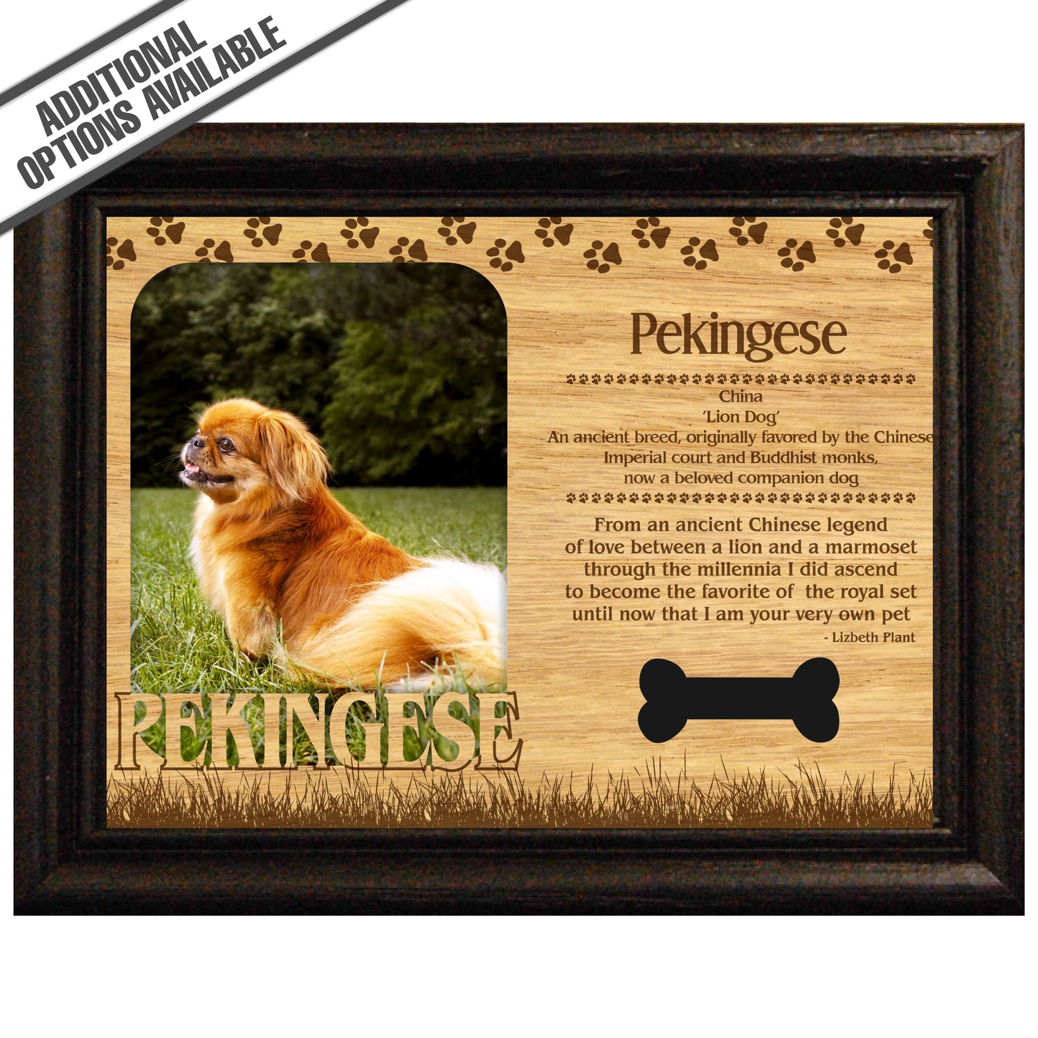 Celebrate the unique bond between you and your dog with our exquisite "Pekingese" wooden photo frame. This beautifully crafted wooden frame showcases engraved paw print, capturing the essence of your furry friend in a stylish and heartwarming way. Perfect for displaying your favorite photo, this frame not only serves as a cherished keepsake but also highlights the playful and loyal personality traits of the Pekingese. A thoughtful gift for dog lovers, it adds a personal touch to any home decor while honoring the love and companionship of your pet. Our FrameWorks magnetic mattes are the best way to accentuate any picture. Prefect for a fridge, locker, file cabinet and more, with a strong magnetic backing. Our FrameWorks material is lightweight making it a great souvenir to pack or mail.