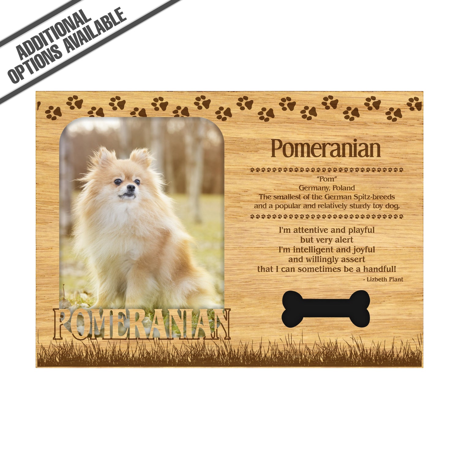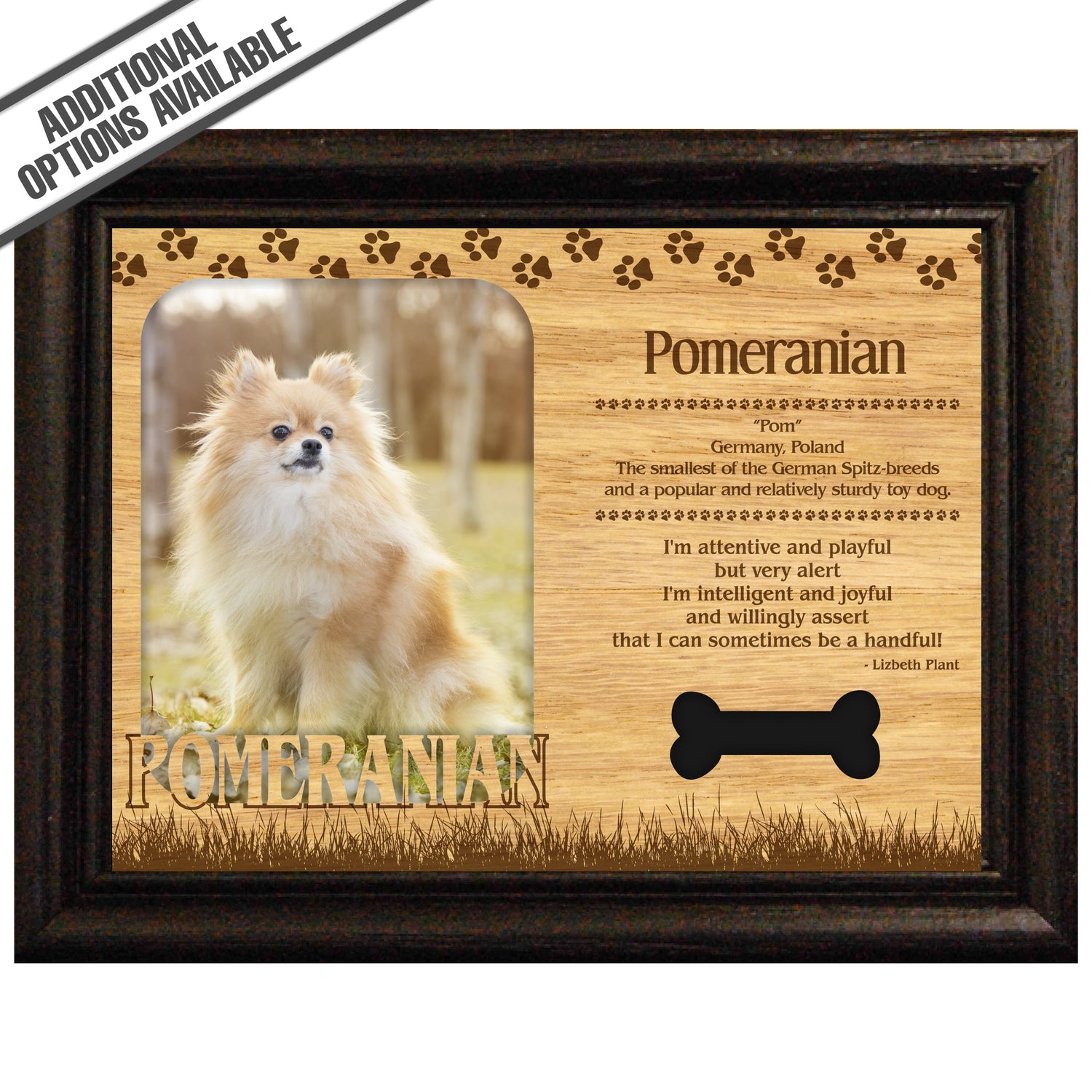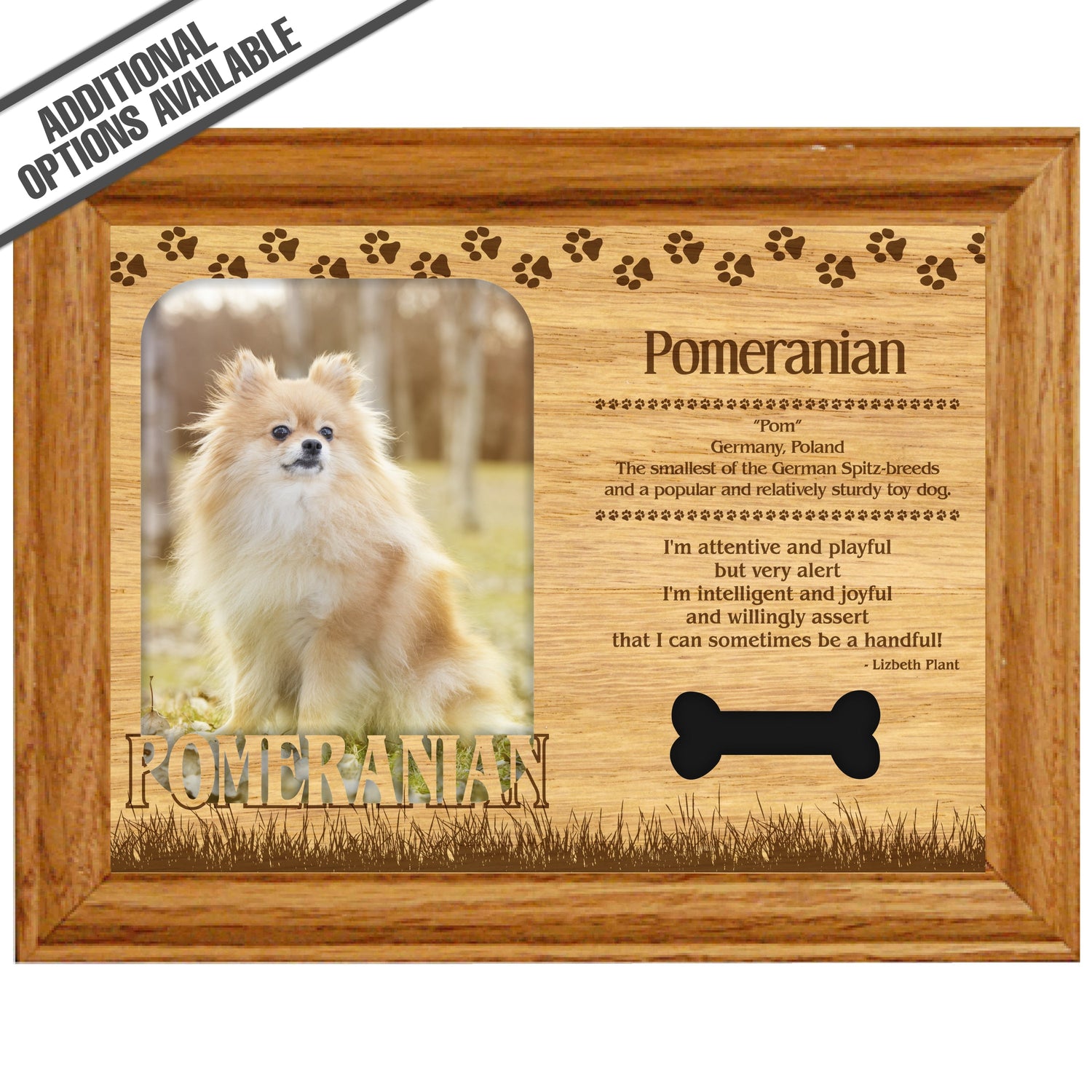 Celebrate the unique bond between you and your dog with our exquisite "Pomeranian" wooden photo frame. This beautifully crafted wooden frame showcases engraved paw print, capturing the essence of your furry friend in a stylish and heartwarming way. Perfect for displaying your favorite photo, this frame not only serves as a cherished keepsake but also highlights the playful and loyal personality traits of the Pomeranian. A thoughtful gift for dog lovers, it adds a personal touch to any home decor while honoring the love and companionship of your pet. Our FrameWorks magnetic mattes are the best way to accentuate any picture. Prefect for a fridge, locker, file cabinet and more, with a strong magnetic backing. Our FrameWorks material is lightweight making it a great souvenir to pack or mail.