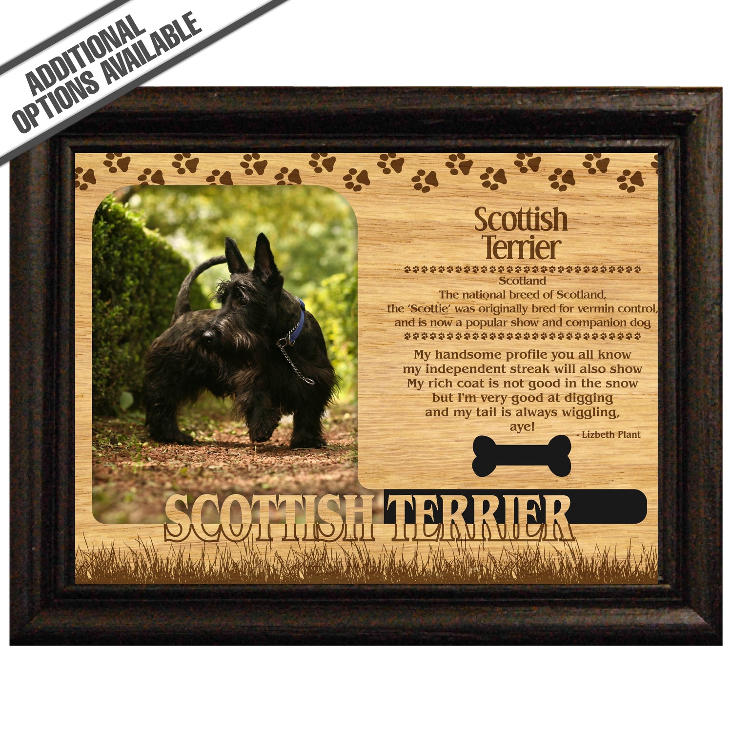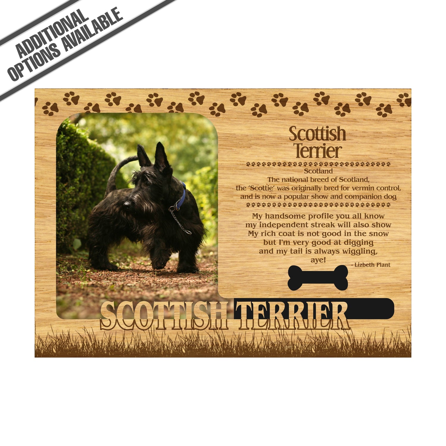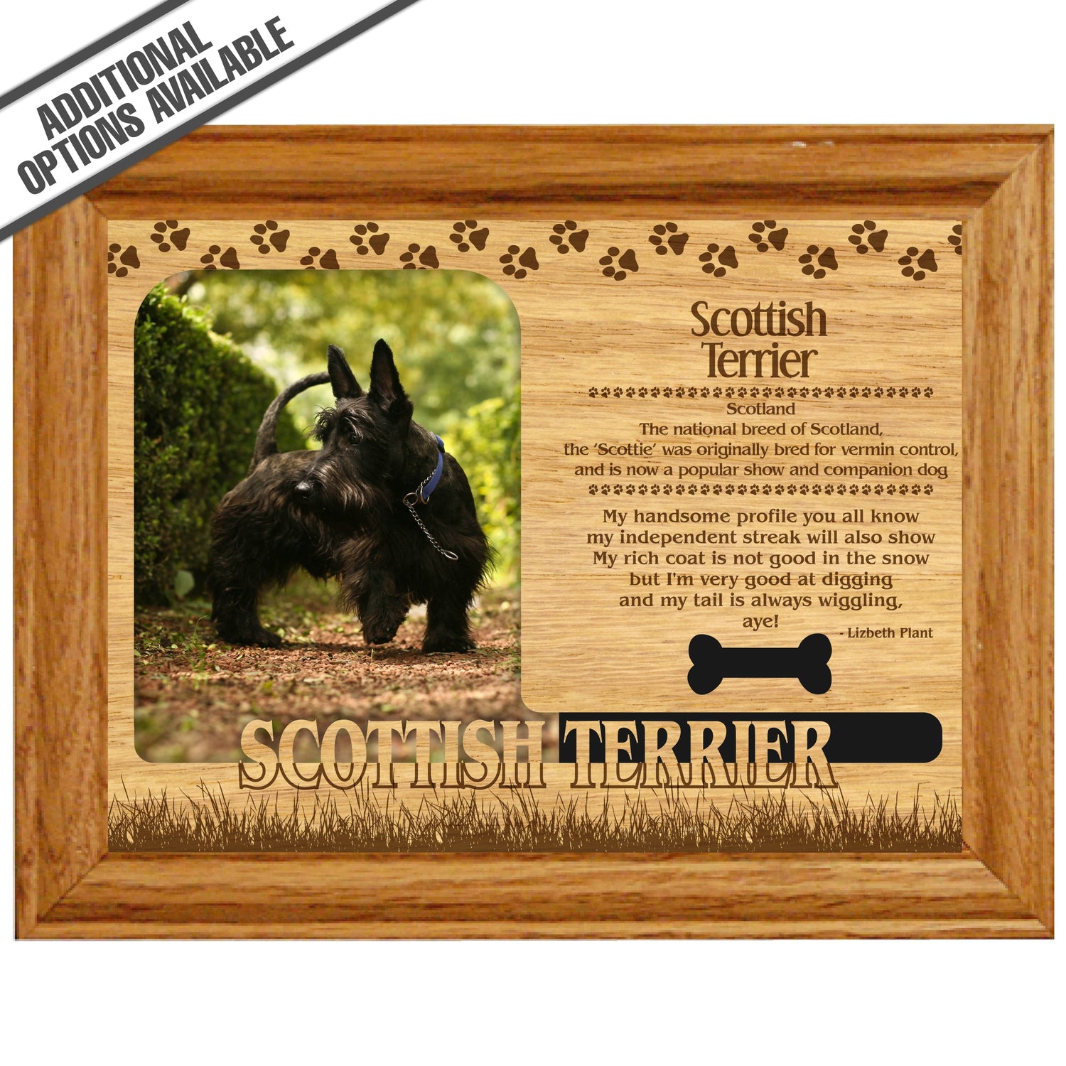 Celebrate the unique bond between you and your dog with our exquisite "Scottish Terrier" wooden photo frame. This beautifully crafted wooden frame showcases engraved paw print, capturing the essence of your furry friend in a stylish and heartwarming way. Perfect for displaying your favorite photo, this frame not only serves as a cherished keepsake but also highlights the playful and loyal personality traits of the Scottish Terrier. A thoughtful gift for dog lovers, it adds a personal touch to any home decor while honoring the love and companionship of your pet. Our FrameWorks magnetic mattes are the best way to accentuate any picture. Prefect for a fridge, locker, file cabinet and more, with a strong magnetic backing. Our FrameWorks material is lightweight making it a great souvenir to pack or mail.
