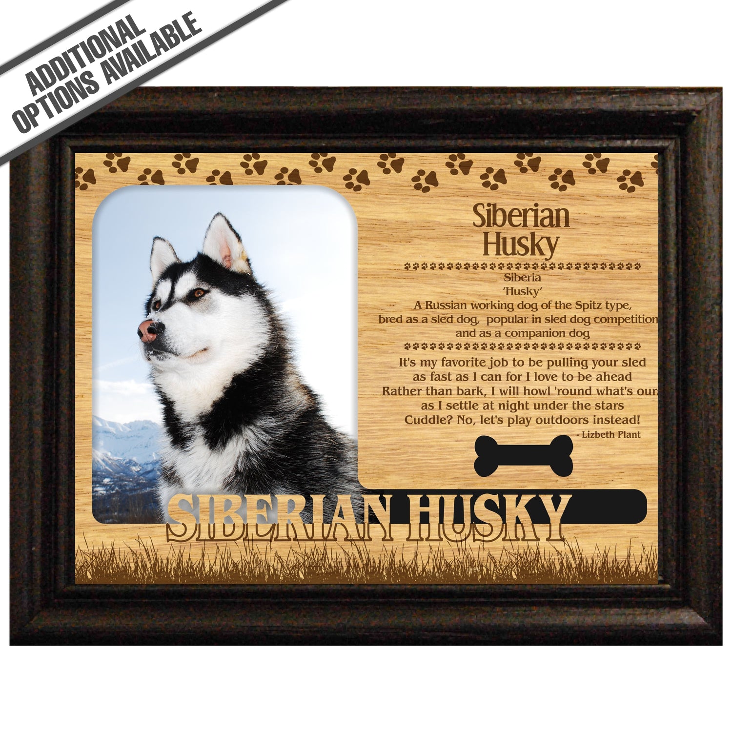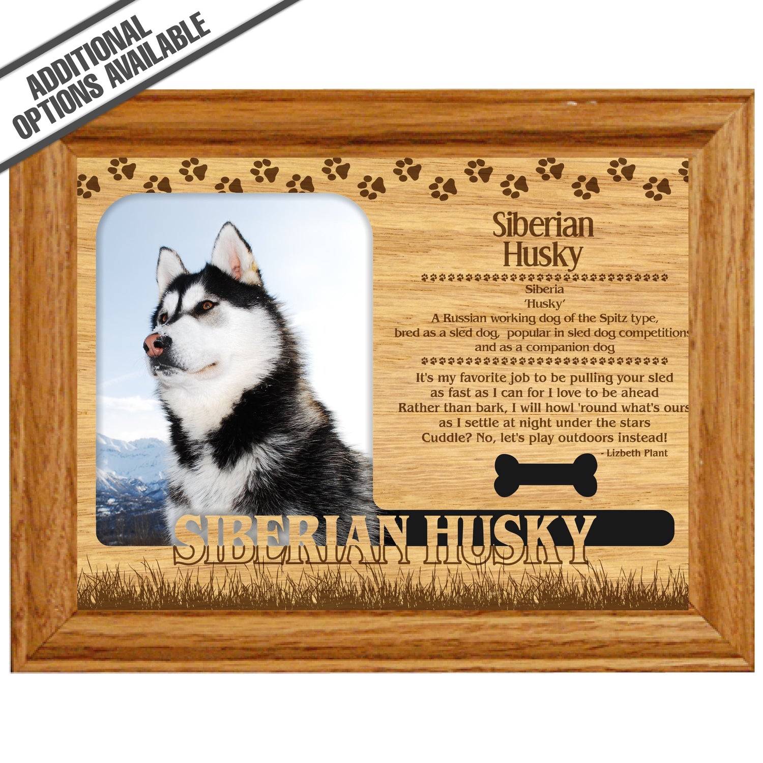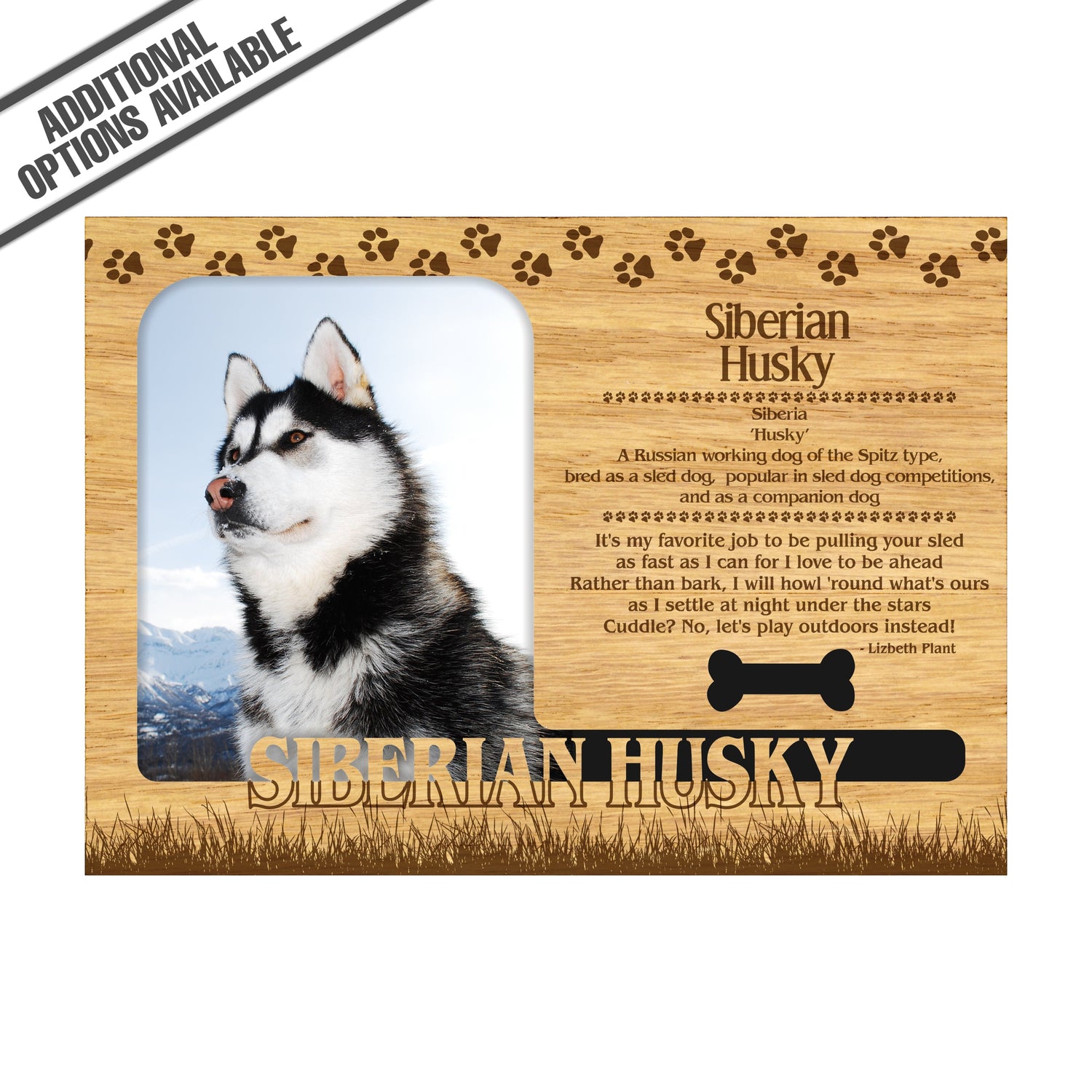 Celebrate the unique bond between you and your dog with our exquisite "Siberian Husky" wooden photo frame. This beautifully crafted wooden frame showcases engraved paw print, capturing the essence of your furry friend in a stylish and heartwarming way. Perfect for displaying your favorite photo, this frame not only serves as a cherished keepsake but also highlights the playful and loyal personality traits of the Siberian Husky. A thoughtful gift for dog lovers, it adds a personal touch to any home decor while honoring the love and companionship of your pet. Our FrameWorks magnetic mattes are the best way to accentuate any picture. Prefect for a fridge, locker, file cabinet and more, with a strong magnetic backing. Our FrameWorks material is lightweight making it a great souvenir to pack or mail.