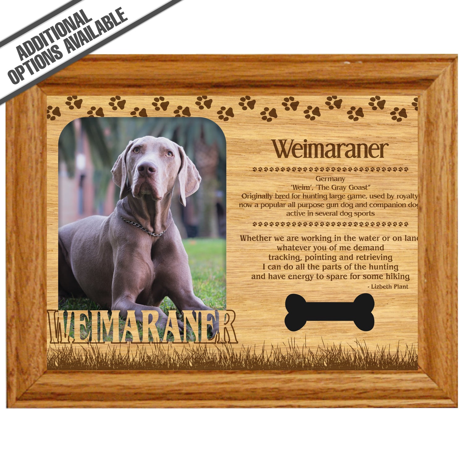 Celebrate the unique bond between you and your dog with our exquisite "Weimaraner" wooden photo frame. This beautifully crafted wooden frame showcases engraved paw print, capturing the essence of your furry friend in a stylish and heartwarming way. Perfect for displaying your favorite photo, this frame not only serves as a cherished keepsake but also highlights the playful and loyal personality traits of the Weimaraner. A thoughtful gift for dog lovers, it adds a personal touch to any home decor while honoring the love and companionship of your pet. Our FrameWorks magnetic mattes are the best way to accentuate any picture. Prefect for a fridge, locker, file cabinet and more, with a strong magnetic backing. Our FrameWorks material is lightweight making it a great souvenir to pack or mail.