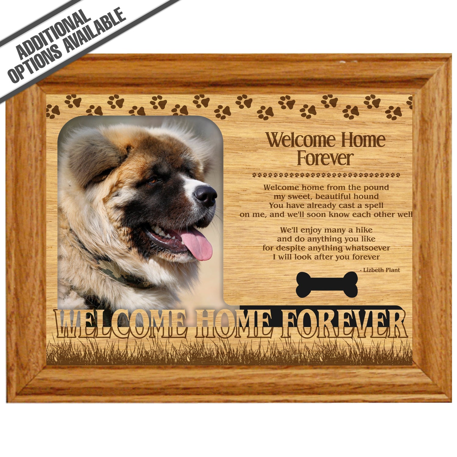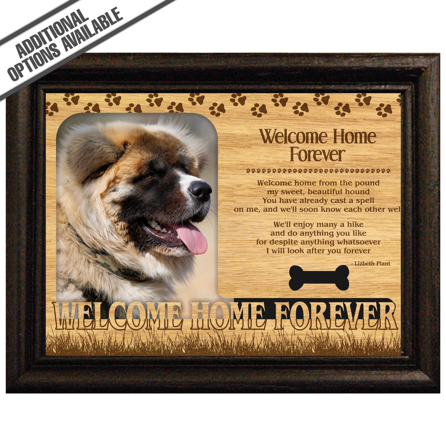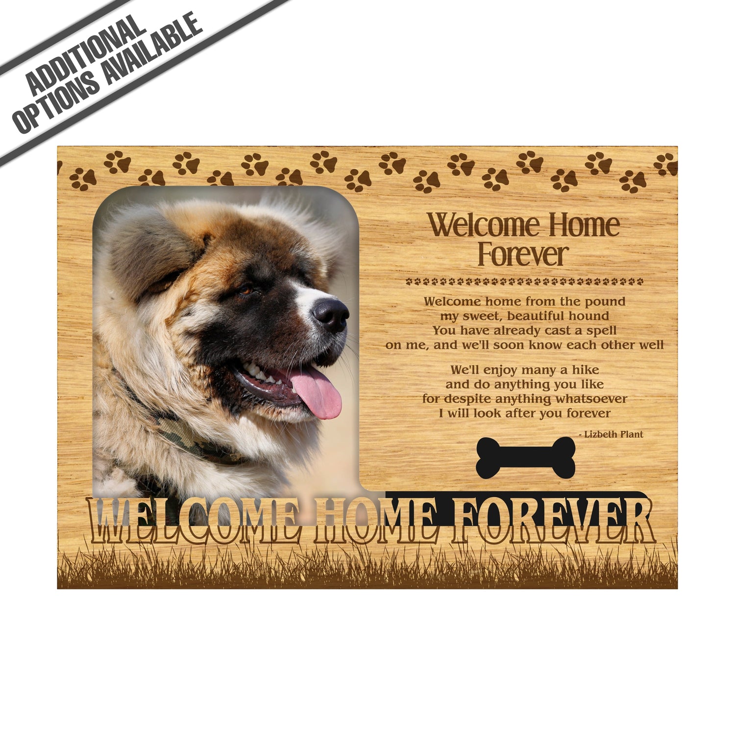 Celebrate the unique bond between you and your dog with our exquisite "Welcome Home Forever" wooden photo frame. This beautifully crafted wooden frame showcases engraved paw print, capturing the essence of your furry friend in a stylish and heartwarming way. Perfect for displaying your favorite photo, this frame not only serves as a cherished keepsake but also highlights the playful and loyal personality traits of your loving dog. A thoughtful gift for dog lovers, it adds a personal touch to any home decor while honoring the love and companionship of your pet. Our FrameWorks magnetic mattes are the best way to accentuate any picture. Prefect for a fridge, locker, file cabinet and more, with a strong magnetic backing. Our FrameWorks material is lightweight making it a great souvenir to pack or mail.