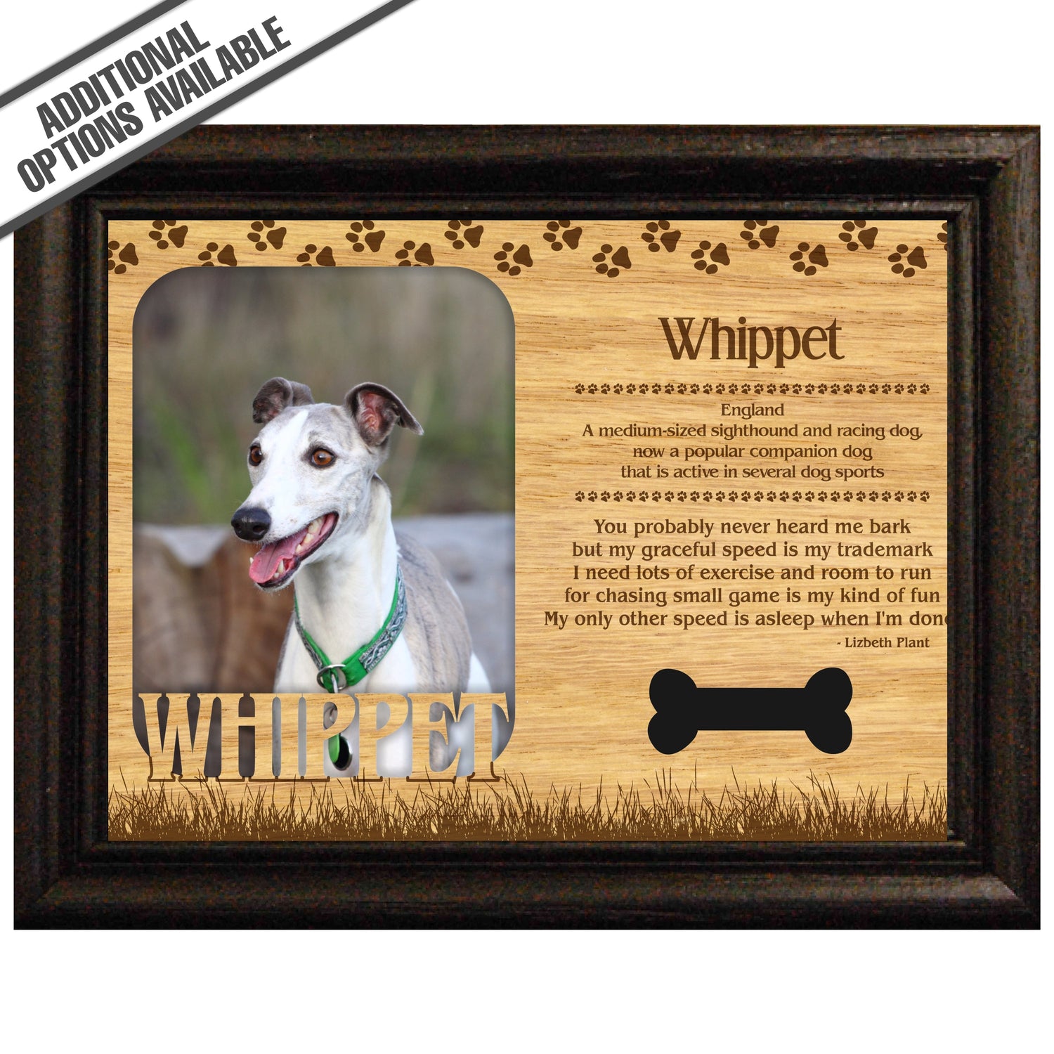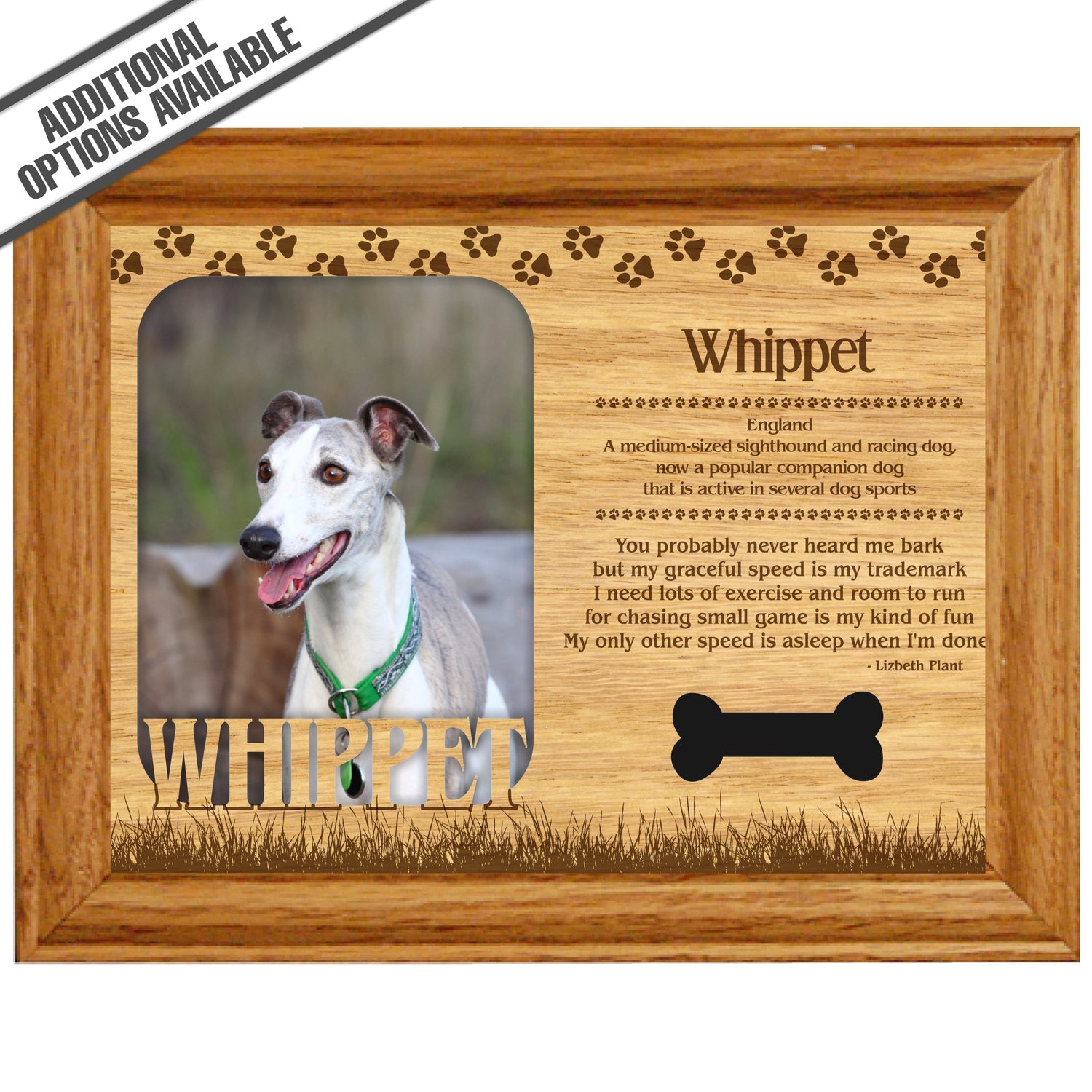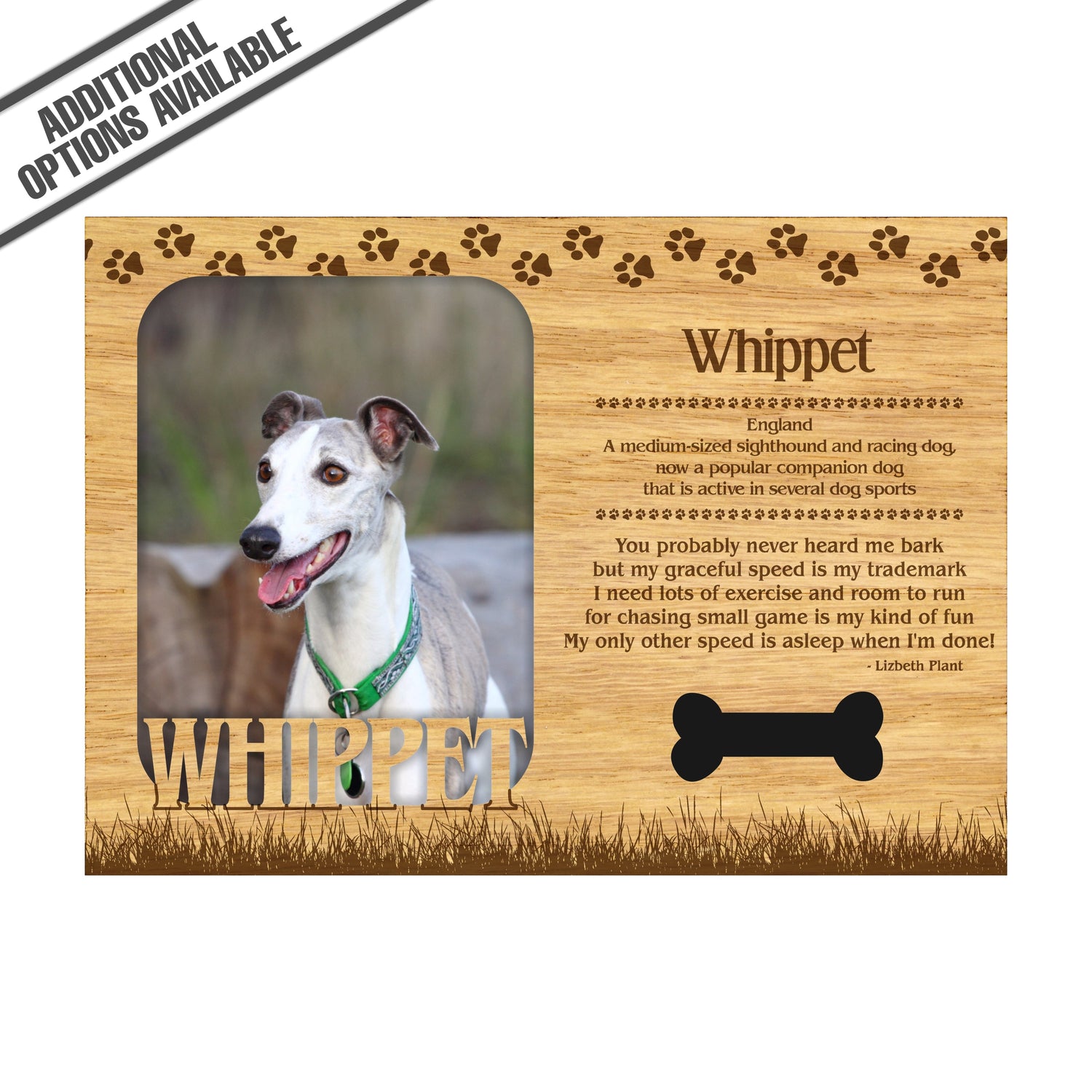 Celebrate the unique bond between you and your dog with our exquisite "Whippet" wooden photo frame. This beautifully crafted wooden frame showcases engraved paw print, capturing the essence of your furry friend in a stylish and heartwarming way. Perfect for displaying your favorite photo, this frame not only serves as a cherished keepsake but also highlights the playful and loyal personality traits of the Whippet. A thoughtful gift for dog lovers, it adds a personal touch to any home decor while honoring the love and companionship of your pet. Our FrameWorks magnetic mattes are the best way to accentuate any picture. Prefect for a fridge, locker, file cabinet and more, with a strong magnetic backing. Our FrameWorks material is lightweight making it a great souvenir to pack or mail.