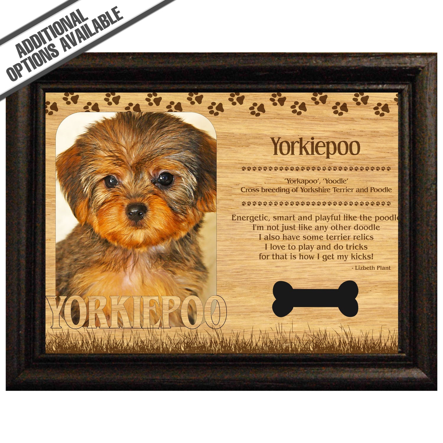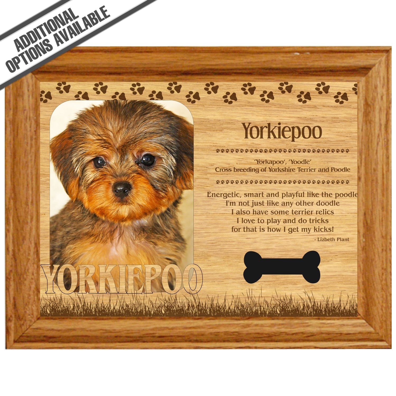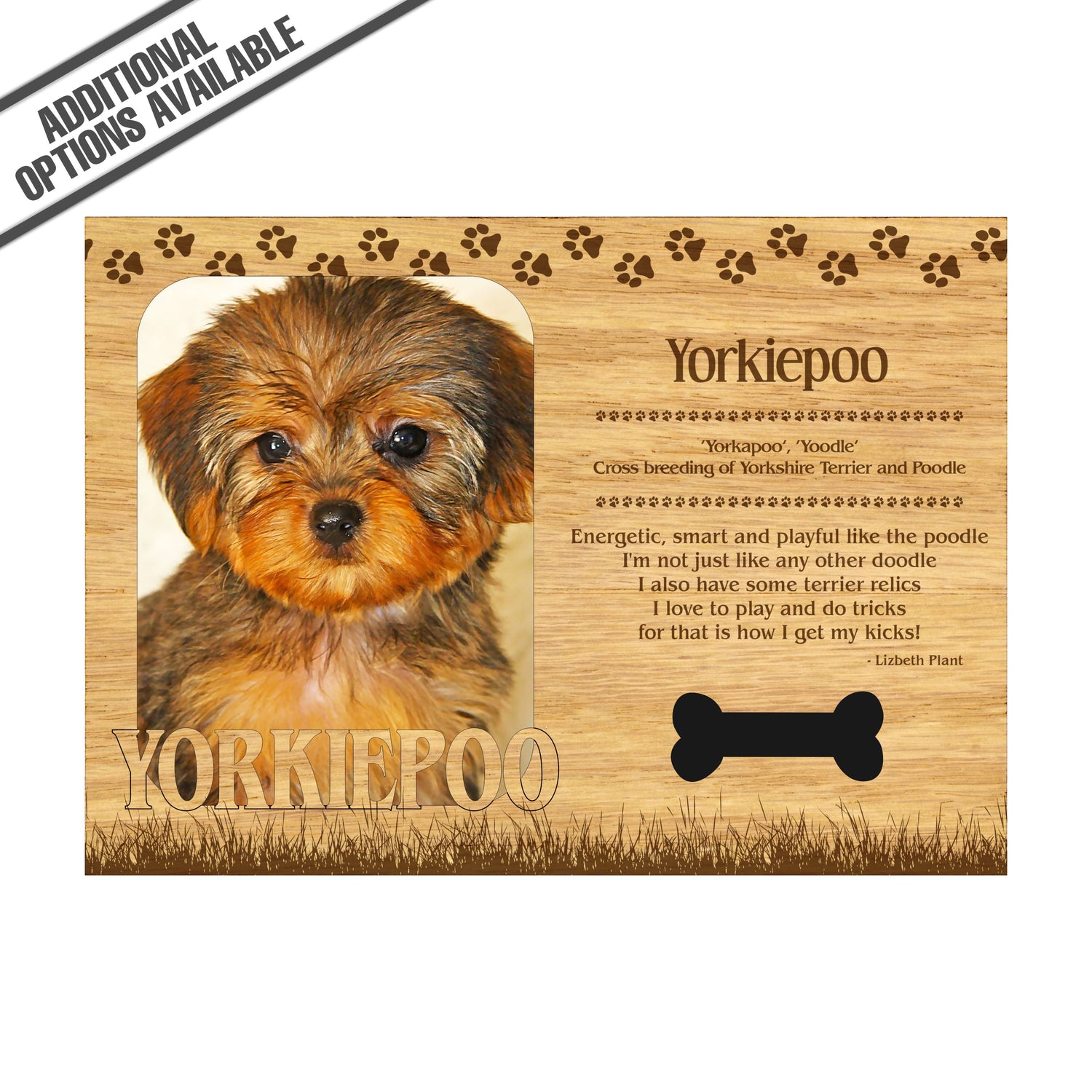 Celebrate the unique bond between you and your dog with our exquisite "Yorkiepoo" wooden photo frame. This beautifully crafted wooden frame showcases engraved paw print, capturing the essence of your furry friend in a stylish and heartwarming way. Perfect for displaying your favorite photo, this frame not only serves as a cherished keepsake but also highlights the playful and loyal personality traits of the Yorkiepoo. A thoughtful gift for dog lovers, it adds a personal touch to any home decor while honoring the love and companionship of your pet. Our FrameWorks magnetic mattes are the best way to accentuate any picture. Prefect for a fridge, locker, file cabinet and more, with a strong magnetic backing. Our FrameWorks material is lightweight making it a great souvenir to pack or mail.