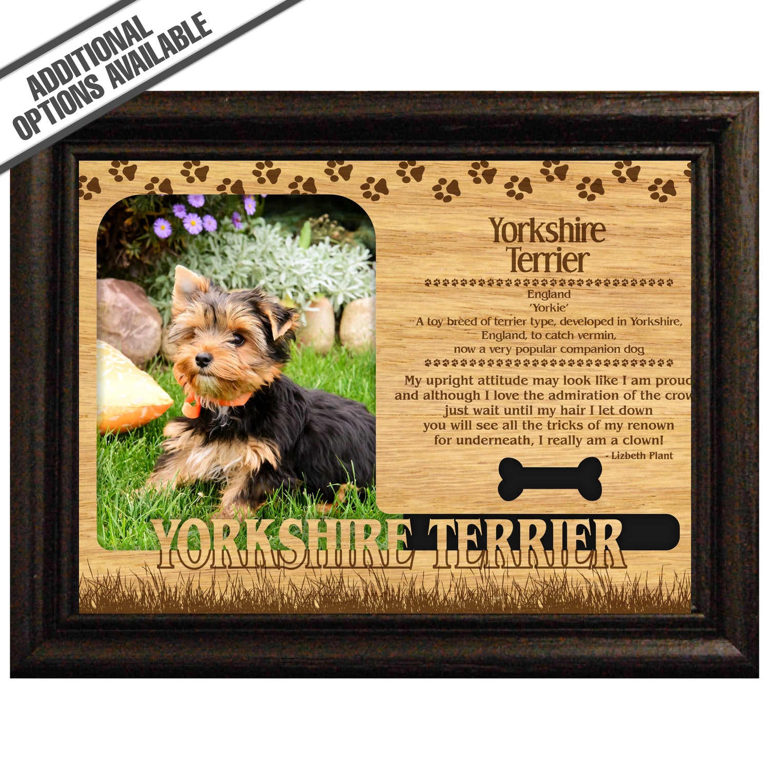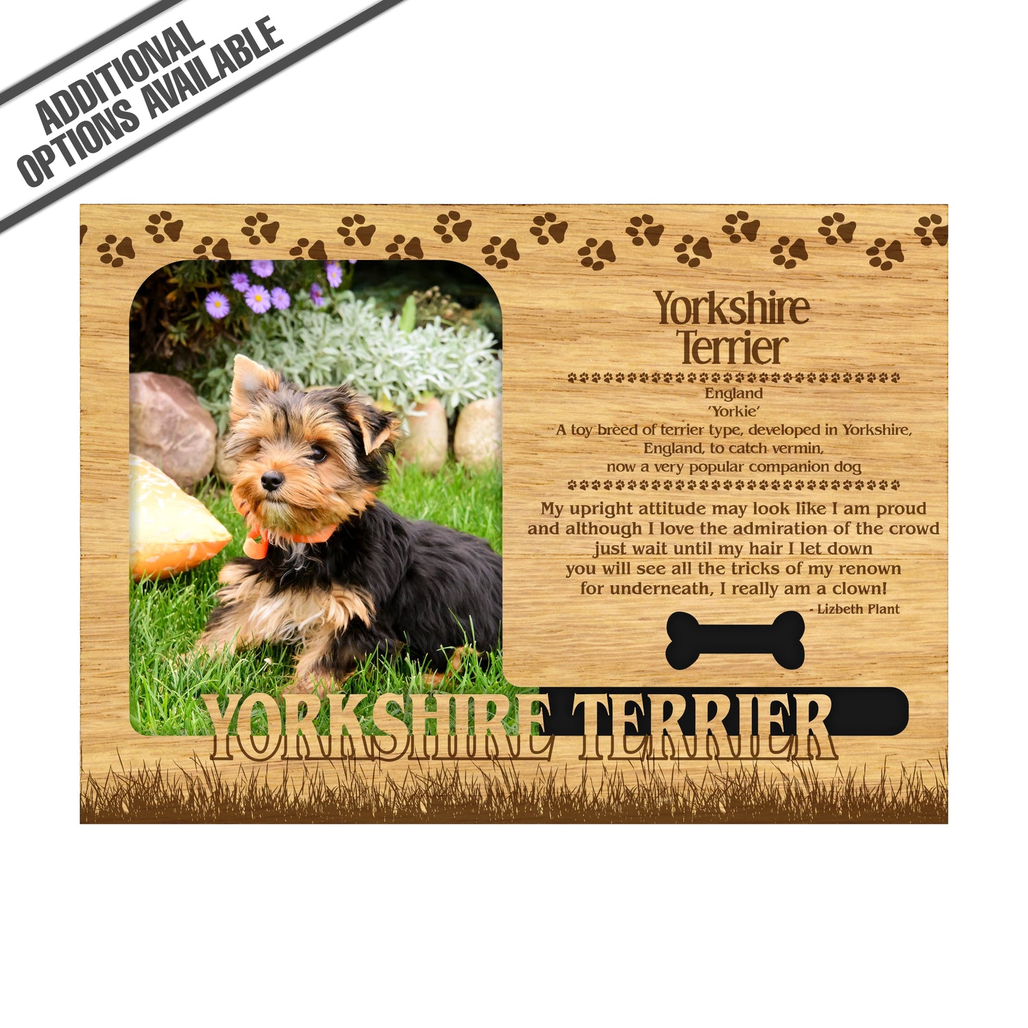 Celebrate the unique bond between you and your dog with our exquisite "Yorkshire Terrier" wooden photo frame. This beautifully crafted wooden frame showcases engraved paw print, capturing the essence of your furry friend in a stylish and heartwarming way. Perfect for displaying your favorite photo, this frame not only serves as a cherished keepsake but also highlights the playful and loyal personality traits of the Yorkiepoo. A thoughtful gift for dog lovers, it adds a personal touch to any home decor while honoring the love and companionship of your pet. Our FrameWorks magnetic mattes are the best way to accentuate any picture. Prefect for a fridge, locker, file cabinet and more, with a strong magnetic backing. Our FrameWorks material is lightweight making it a great souvenir to pack or mail.