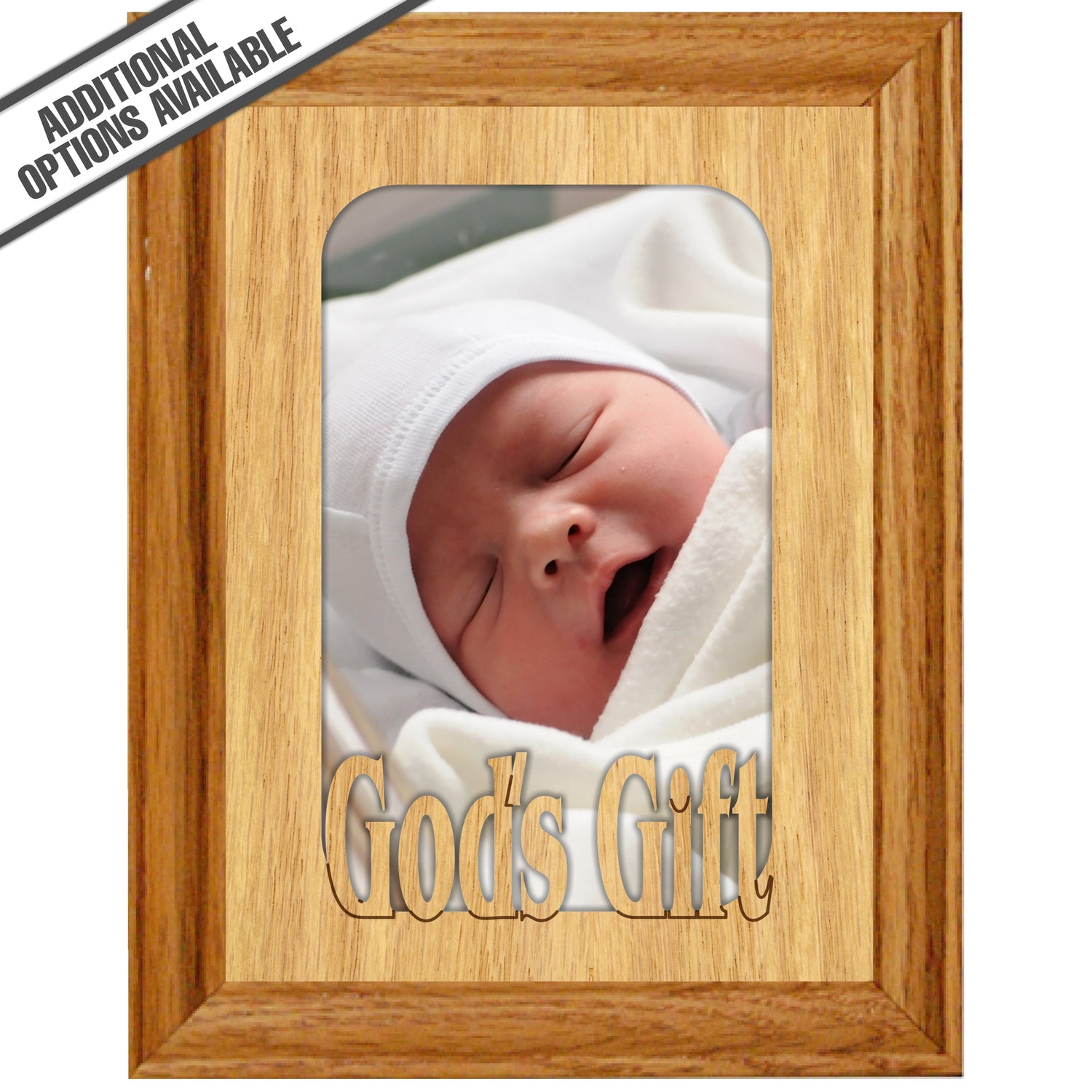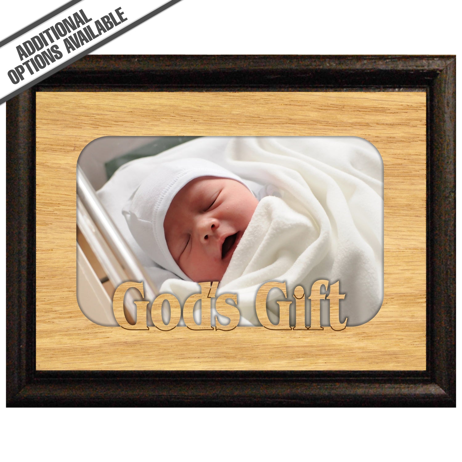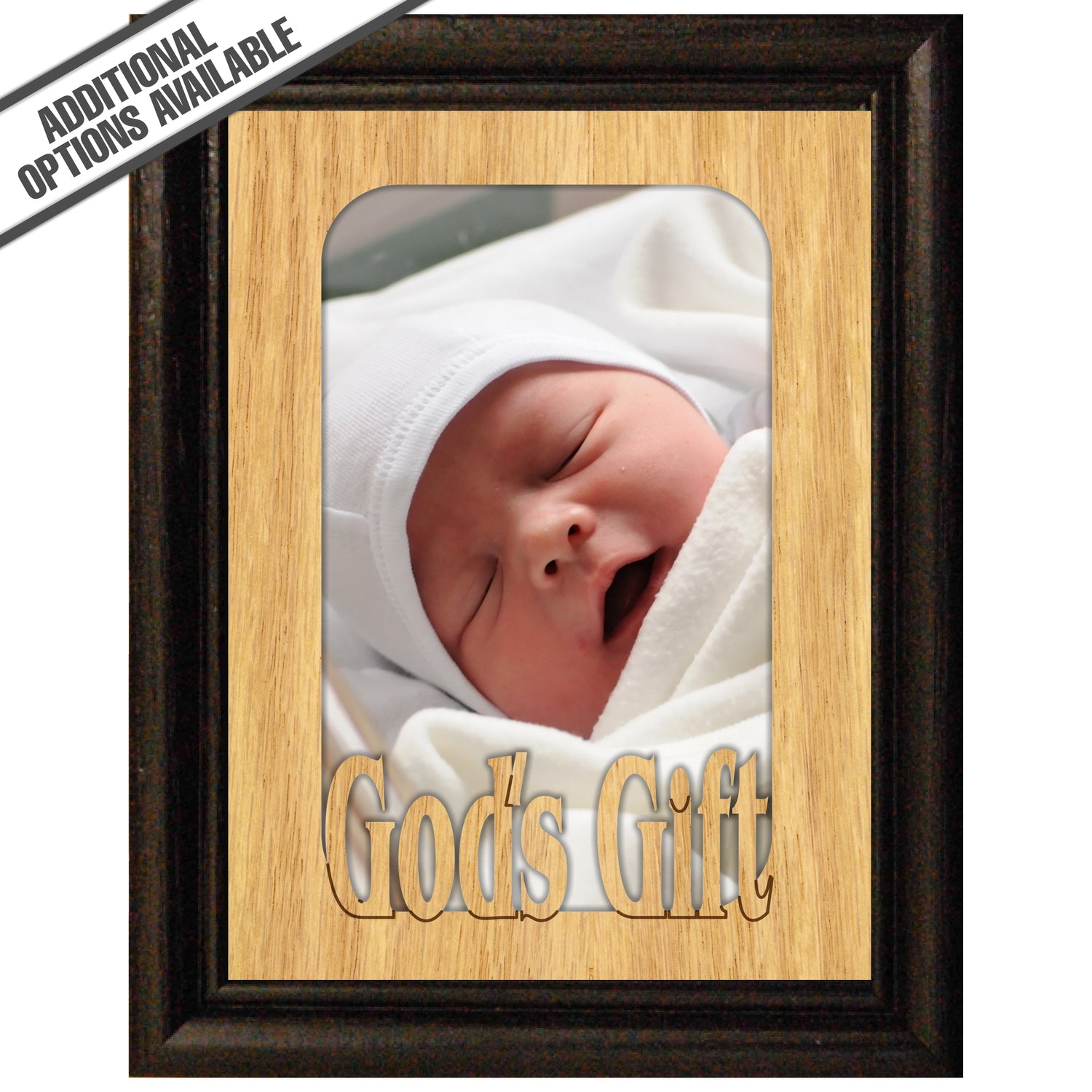 Celebrate the special moments in life with the God's Gift Wooden Picture Frame, a beautiful blend of elegance and sentiment. Crafted from high-quality wood, this frame features a warm finish that complements any decor while showcasing your cherished memories. The heartfelt "God's Gift" inscription adds a personal touch, making it a perfect gift for loved ones or a meaningful addition to your own home. Display your favorite photos and let them serve as a daily reminder of the blessings in your life. Our FrameWorks magnetic mattes are the best way to accentuate any picture. Prefect for a fridge, locker, file cabinet and more, with a strong magnetic backing. Our FrameWorks material is lightweight making it a great souvenir to pack or mail.