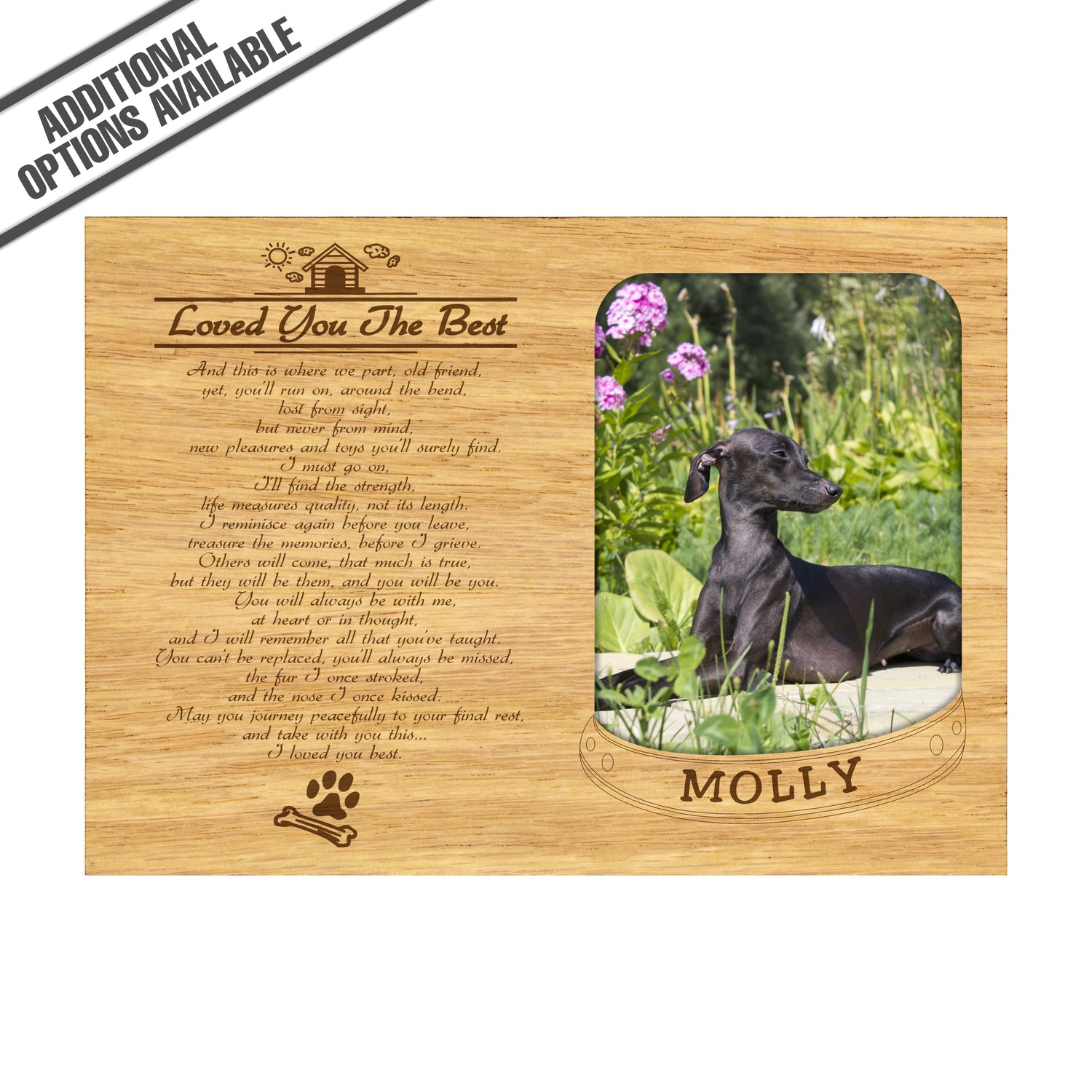 Honor the cherished memory of your beloved canine companion with our personalized " Dog Poem" wooden frame. This beautifully crafted plaque features a heartfelt dog poem, elegantly framed to celebrate the bond you shared. Made from durable materials, it is designed to withstand the test of time, ensuring that your pet's memory remains alive in your heart and home. Customize it with your dog's name, creating a unique tribute that reflects their spirit and the joy they brought to your life. A perfect addition to your garden, home, or as a thoughtful gift for a fellow dog lover, this memorial plaque serves as a lasting reminder of the unconditional love and loyalty of your furry friend. Our FrameWorks magnetic mattes are the best way to accentuate any picture. Prefect for a fridge, locker, file cabinet and more, with a strong magnetic backing. Our FrameWorks material is lightweight making it a great souvenir to pack or mail.