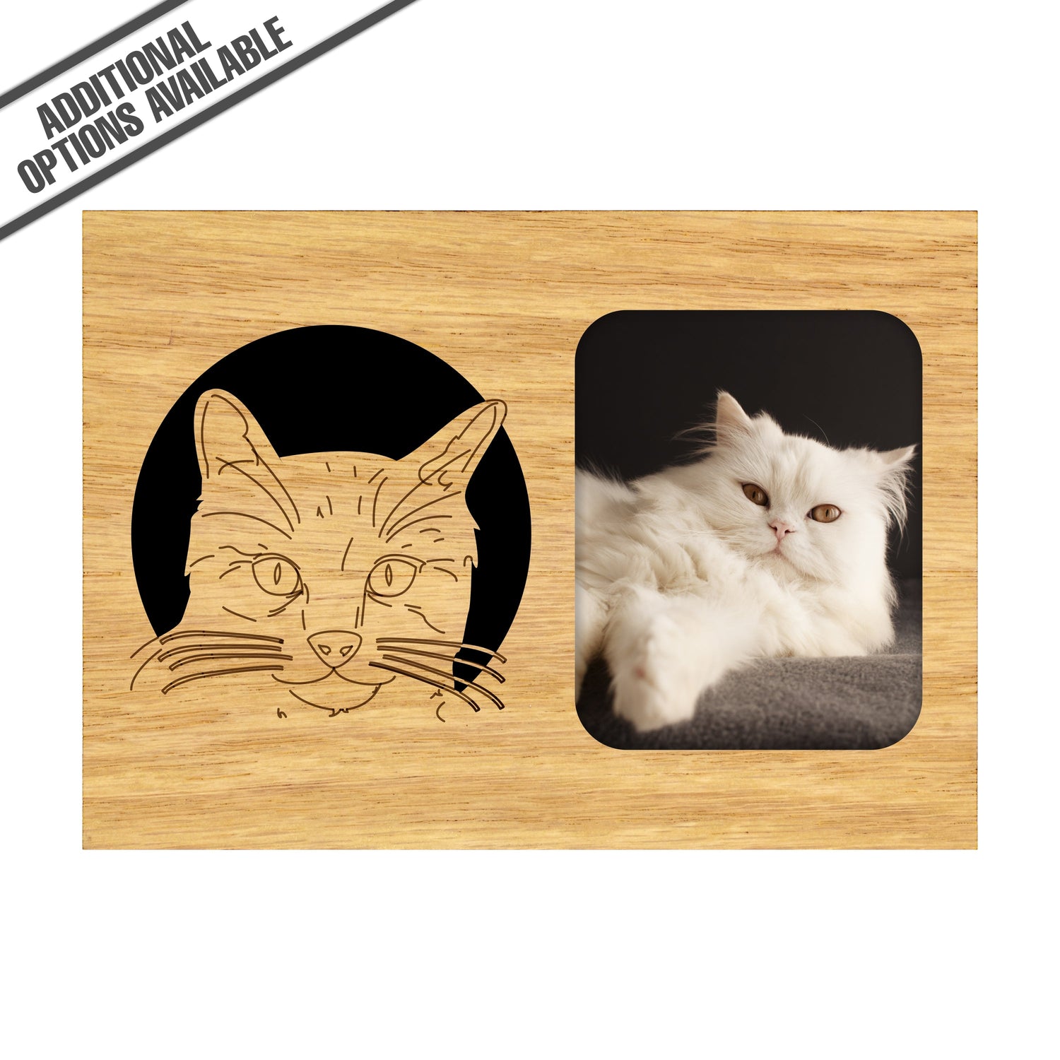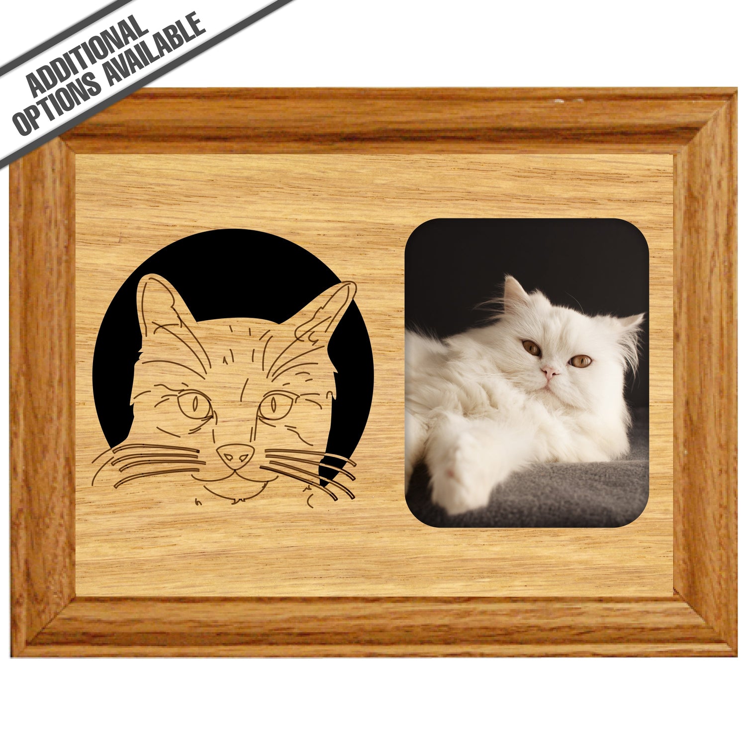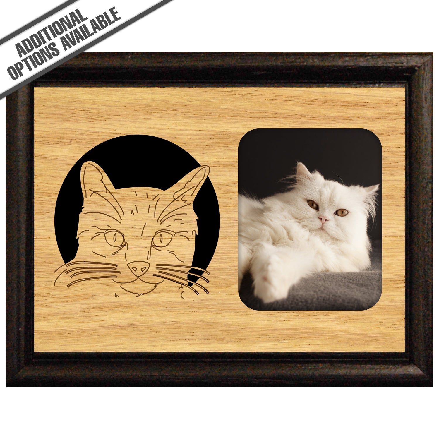 Showcase your feline friend in style with our Cat photo frame featuring an elegantly engraved cat head. This charming wooden frame is designed to hold a cherished photos of your beloved cat, adding a personal touch to your home decor. Crafted with quality materials, it not only highlights your pet's adorable features but also serves as a delightful conversation starter. Perfect for cat lovers, this frame makes an ideal gift or a lovely addition to your own collection. Celebrate your furry companion with this unique and stylish display. Our FrameWorks magnetic mattes are the best way to accentuate any picture. Prefect for a fridge, locker, file cabinet and more, with a strong magnetic backing. Our FrameWorks material is lightweight making it a great souvenir to pack or mail.