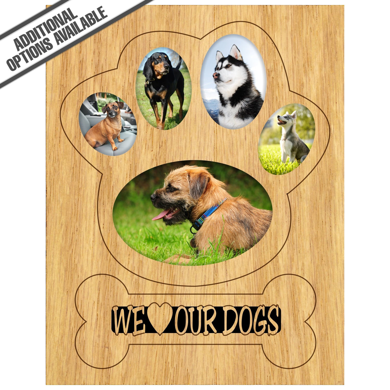 Celebrate the unconditional love of your furry friends with our "We Love Our Dogs" wooden photo frame. Crafted from high-quality wood, this elegant frame not only showcases your cherished memories but also adds a warm, rustic touch to any home decor. Its heartfelt inscription serves as a daily reminder of the joy and companionship that dogs bring into our lives. Perfect for displaying your favorite pet photos, this frame makes an ideal gift for dog lovers or a delightful addition to your own collection. Our FrameWorks magnetic mattes are the best way to accentuate any picture. Prefect for a fridge, locker, file cabinet and more, with a strong magnetic backing. Our FrameWorks material is lightweight making it a great souvenir to pack or mail.