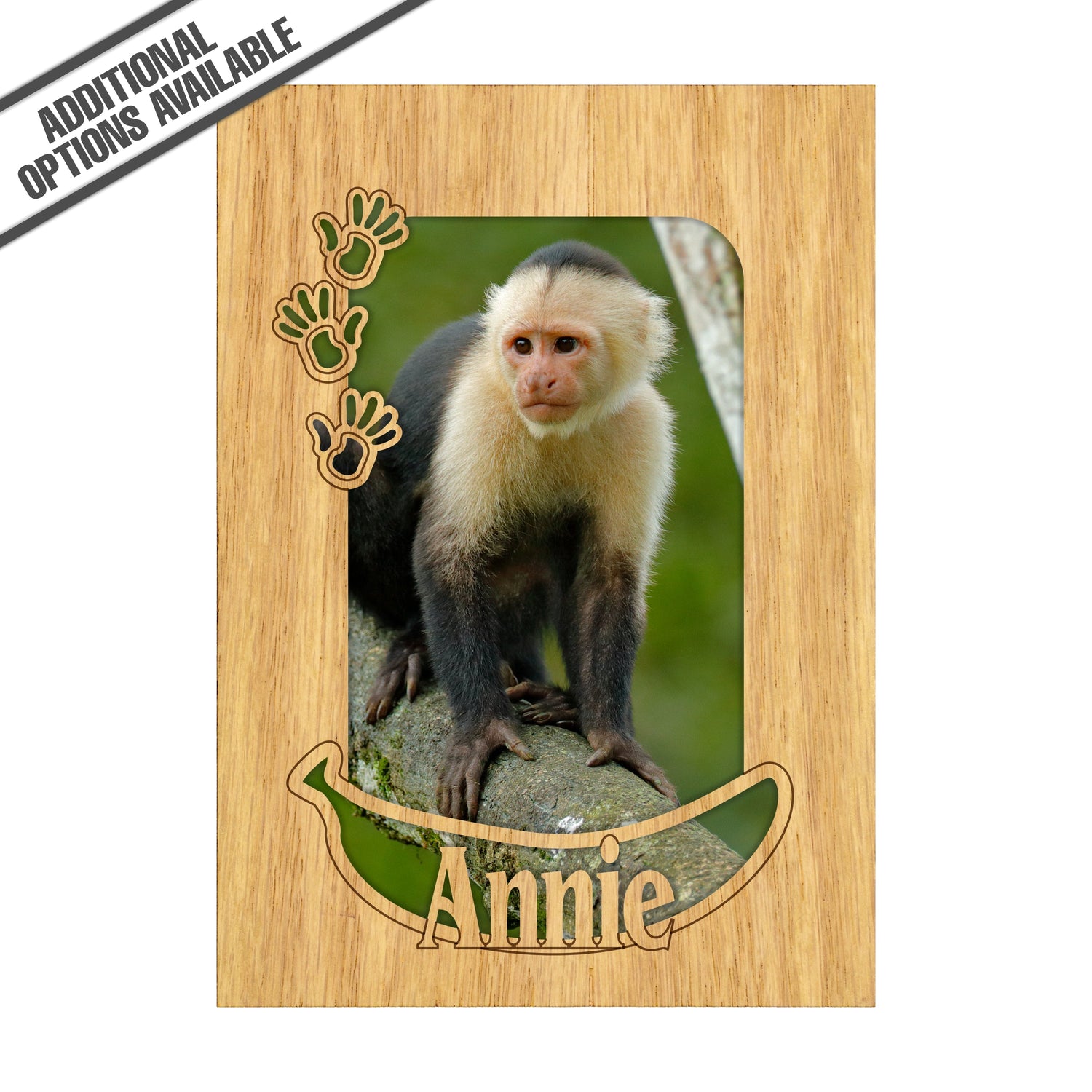 Bring a touch of whimsy to your home with our personalized wooden monkey photo frame, affectionately known as the Banana picture frame! Crafted from high-quality wood, this charming frame is perfect for showcasing your favorite memories while adding a playful vibe to any room. Customize it with a name or special date to make it truly unique, making it an ideal gift for birthdays, baby showers, or just because. Celebrate your cherished moments with a delightful twist that will make you smile every time you see it! Our FrameWorks magnetic mattes are the best way to accentuate any picture. Prefect for a fridge, locker, file cabinet and more, with a strong magnetic backing. Our FrameWorks material is lightweight making it a great souvenir to pack or mail.