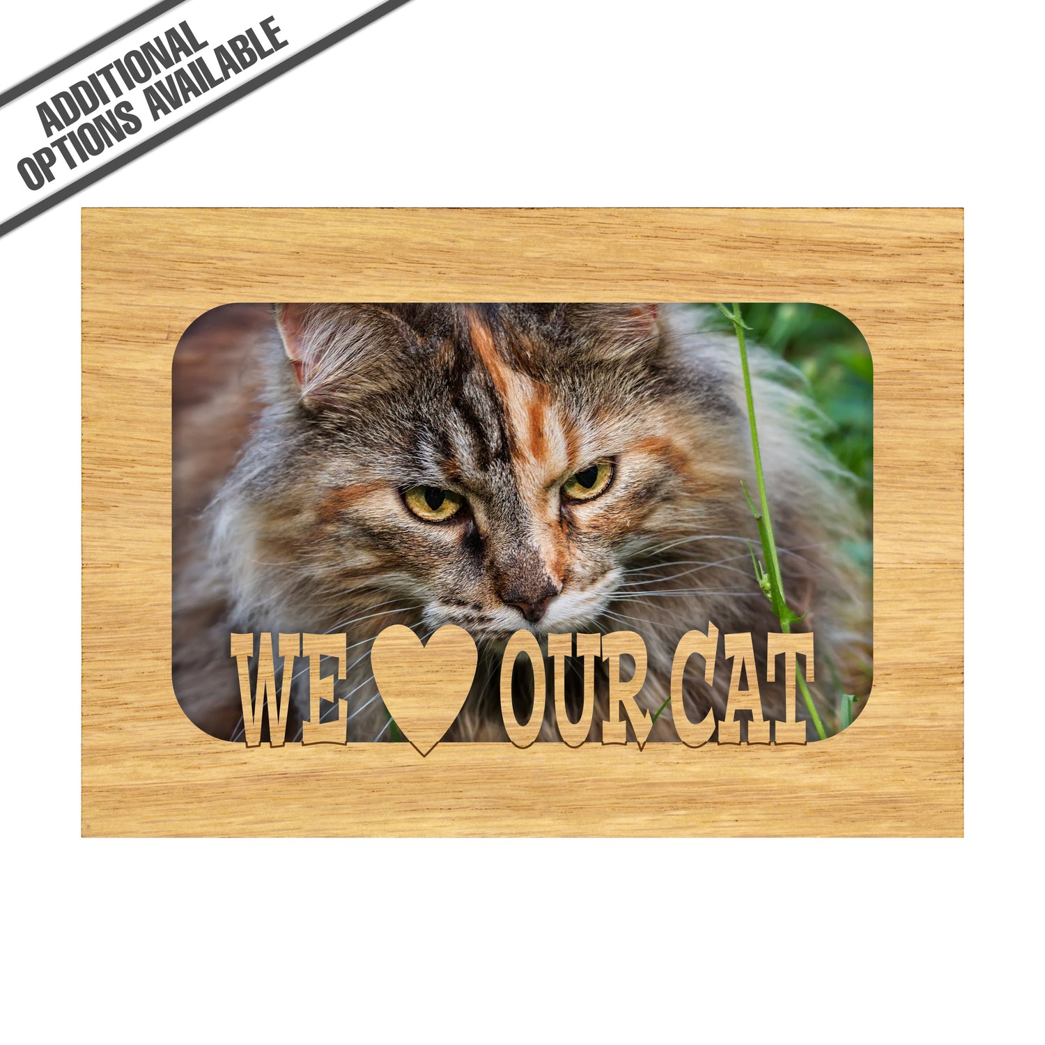 Celebrate your love for feline companions with our "We Love Our Cat" wooden photo frame, a charming addition to any home. Crafted from high-quality wood, this plaque features a beautifully engraved design that captures the essence of cat affection. Its rustic finish complements various decor styles, making it a perfect gift for cat lovers or a delightful treat for yourself. Hang it in your living room, hallway, or cat corner to showcase your passion for your furry friends while adding a touch of warmth to your space.
