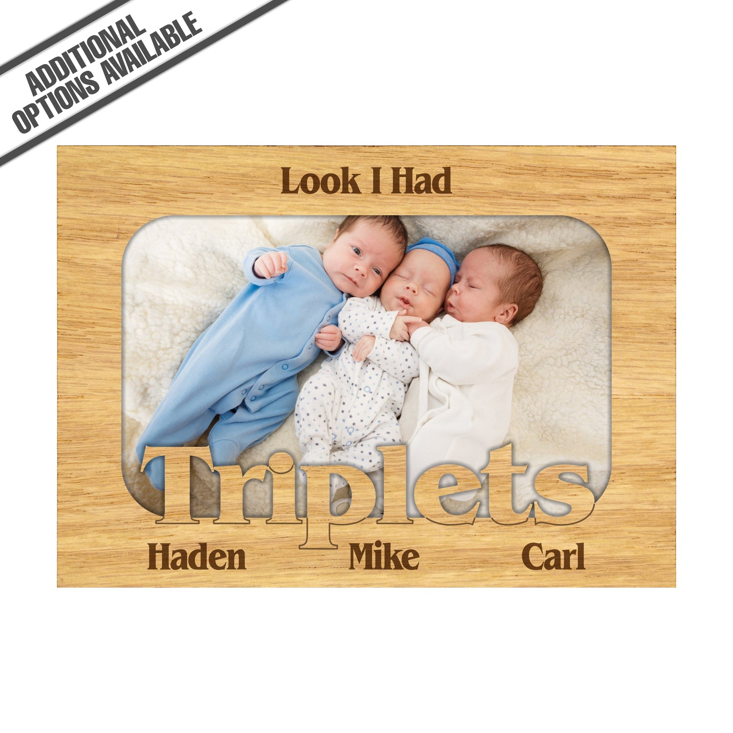 Celebrate the joy of family with our Triplets personalized wooden frame. This beautifully crafted frame is designed to hold your cherished photos, making it the perfect keepsake for parents of triplets. Made from high-quality wood, it can be customized with your childernes names, adding a personal touch to your home decor. Ideal for displaying precious memories, this frame not only enhances your living space but also serves as a heartfelt gift for baby showers or family milestones. Embrace the unique bond of triplets and showcase their moments in style. Our FrameWorks magnetic mattes are the best way to accentuate any picture. Prefect for a fridge, locker, file cabinet and more, with a strong magnetic backing. Our FrameWorks material is lightweight making it a great souvenir to pack or mail.