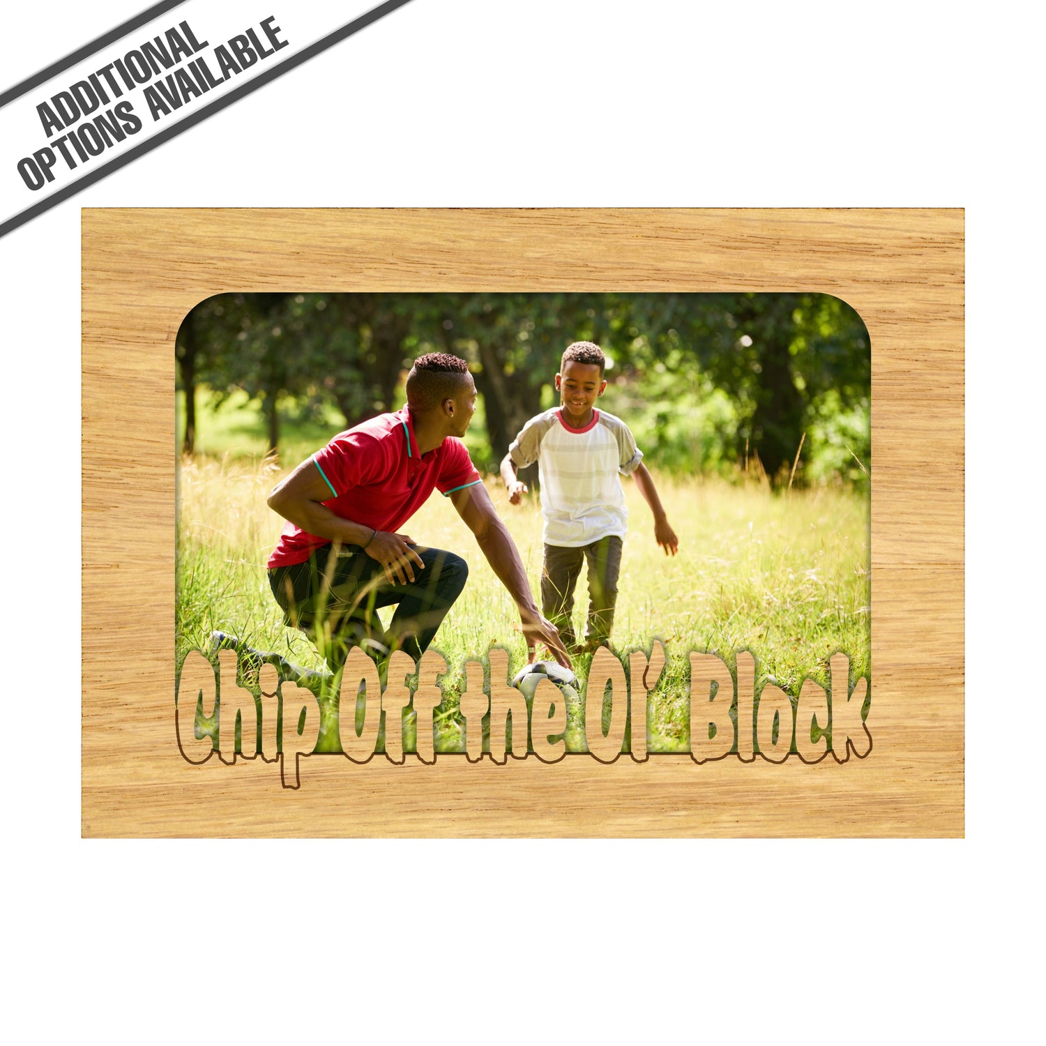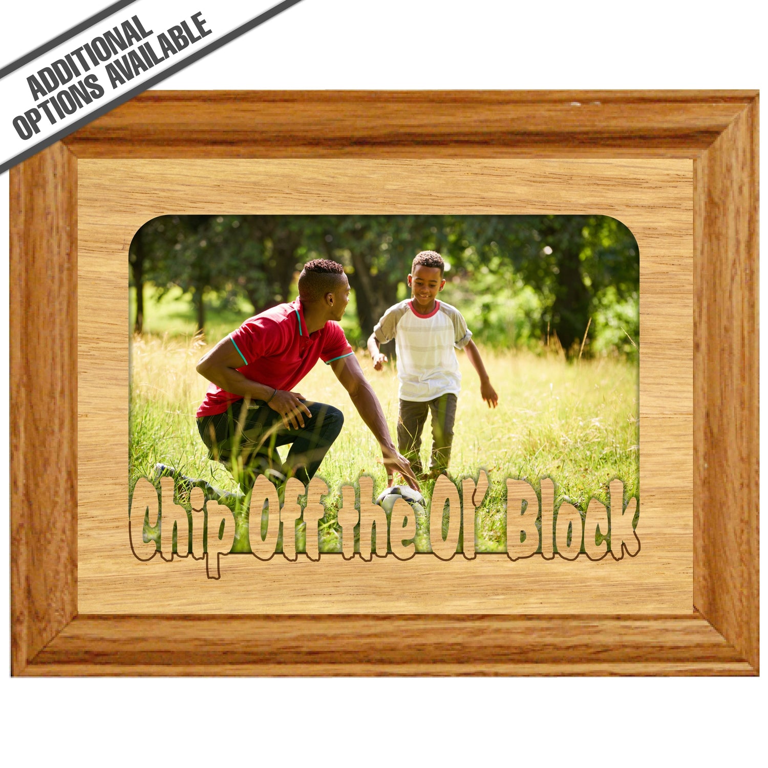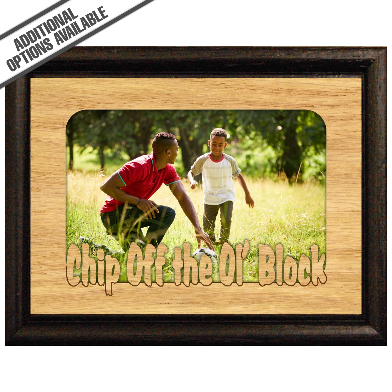 Celebrate family ties with our charming Chip Off the Ol' Block picture frame! Crafted from high-quality wood, this delightful frame features the playful phrase "Chip off the ol' Block," making it the perfect way to showcase your favorite memories with loved ones. Its rustic design adds warmth to any decor, while the sturdy construction ensures your cherished photos are beautifully displayed for years to come. Gift it to a proud parent or treat yourself—this frame is a heartwarming addition to any home! Our FrameWorks magnetic mattes are the best way to accentuate any picture. Prefect for a fridge, locker, file cabinet and more, with a strong magnetic backing. Our FrameWorks material is lightweight making it a great souvenir to pack or mail.