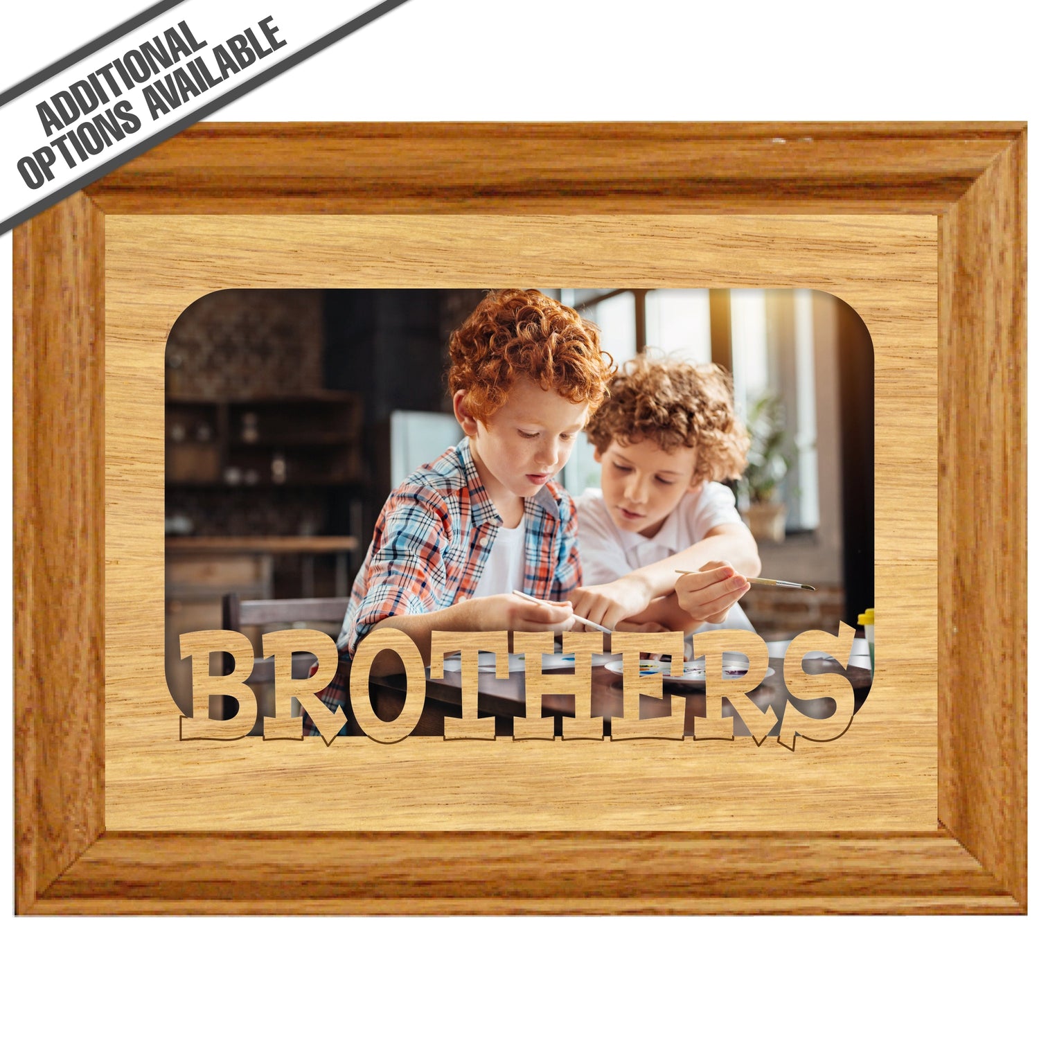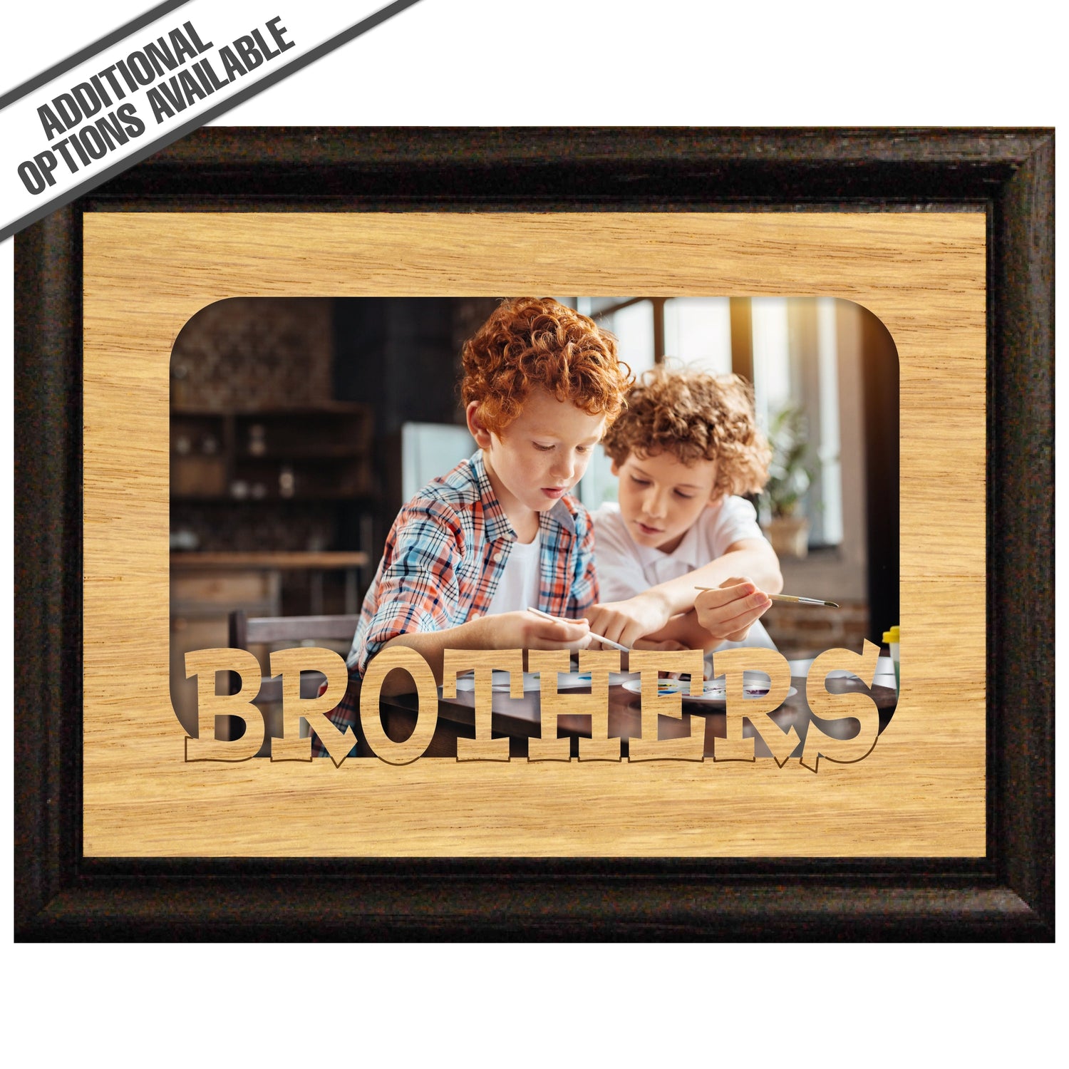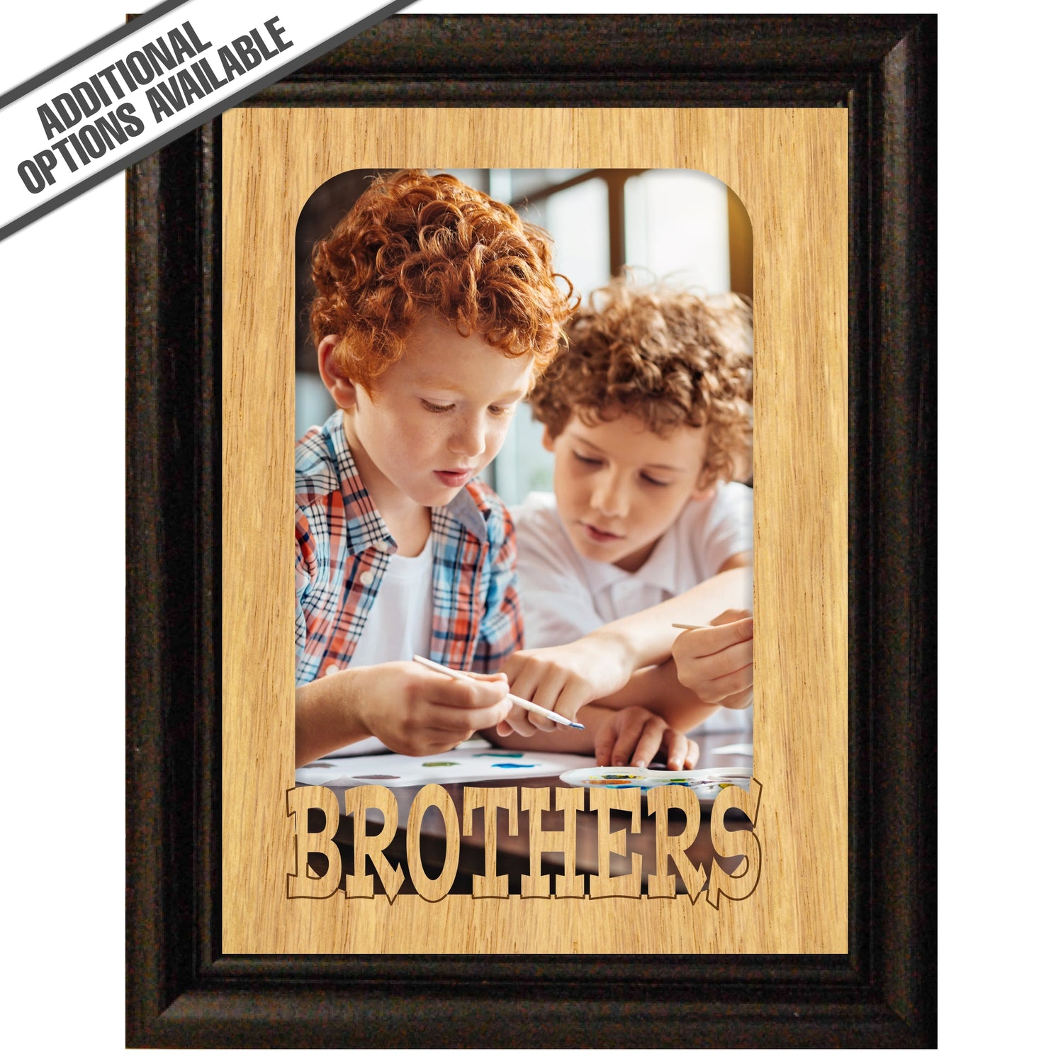 Celebrate the bond of brotherhood with our beautifully crafted wooden frame featuring the engraved word "Brothers." This elegant piece not only serves as a stunning display for your cherished memories but also adds a heartfelt touch to any room. Made from high-quality wood, it ensures durability while its timeless design complements various decor styles. Perfect for gifting or as a personal keepsake, this frame is a wonderful way to honor the special connection you share with your brothers. Our FrameWorks magnetic mattes are the best way to accentuate any picture. Prefect for a fridge, locker, file cabinet and more, with a strong magnetic backing. Our FrameWorks material is lightweight making it a great souvenir to pack or mail.