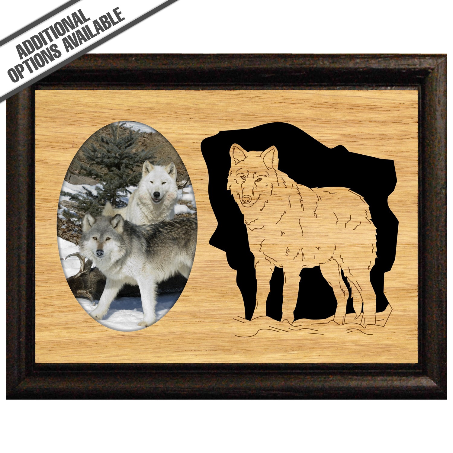 Elevate your home decor with our exquisite Wolf photo frame, featuring a beautifully crafted wooden frame that showcases and engraved majestic wolf. This stunning piece not only serves as a perfect backdrop for your cherished memories but also adds a touch of wilderness and elegance to any room. Ideal for nature lovers and wildlife enthusiasts, this frame is a unique way to celebrate the beauty of the wild while enhancing your living space. Our FrameWorks magnetic mattes are the best way to accentuate any picture. Prefect for a fridge, locker, file cabinet and more, with a strong magnetic backing. Our FrameWorks material is lightweight making it a great souvenir to pack or mail.
