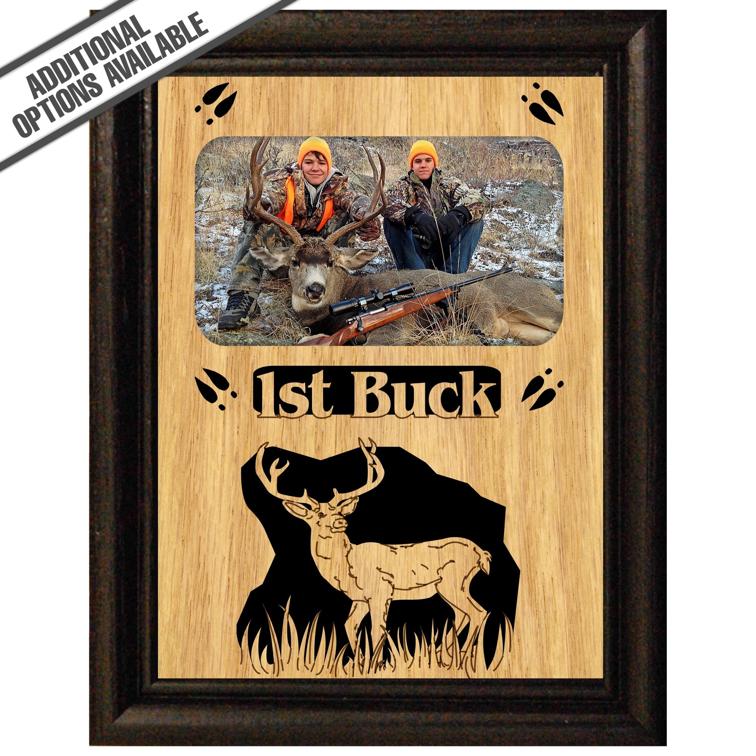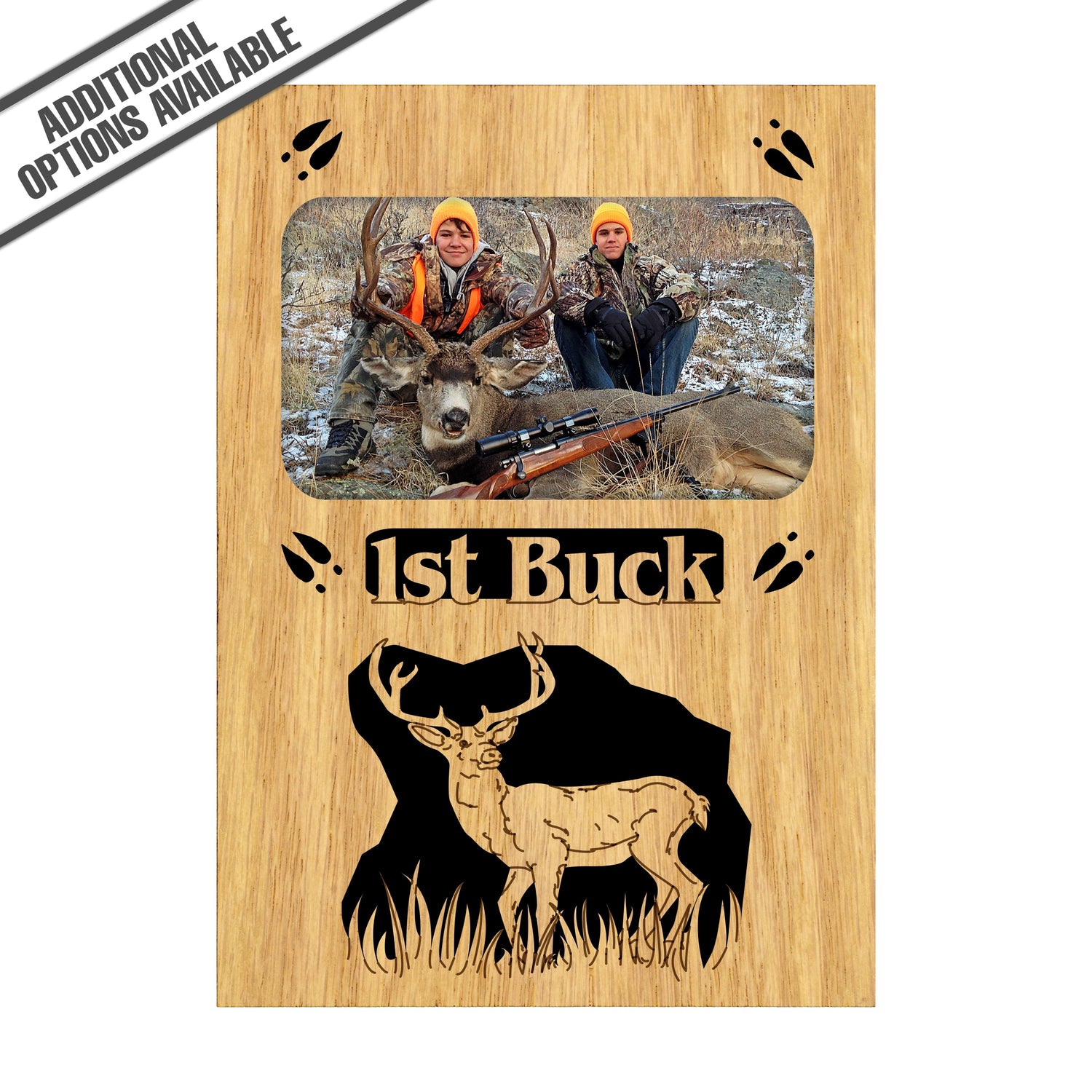 Capture the thrill of that unforgettable moment with our "First Buck" wooden frame. This beautifully crafted photo frame is designed to showcase your cherished memory of your first hunting success, making it a perfect keepsake for any avid hunter. This plaque not only celebrates your milestone but also adds a touch of elegance to your home or office decor. Gift it to yourself or a loved one, and let the memories of that special day live on forever. Our FrameWorks magnetic mattes are the best way to accentuate any picture. Prefect for a fridge, locker, file cabinet and more, with a strong magnetic backing. Our FrameWorks material is lightweight making it a great souvenir to pack or mail.