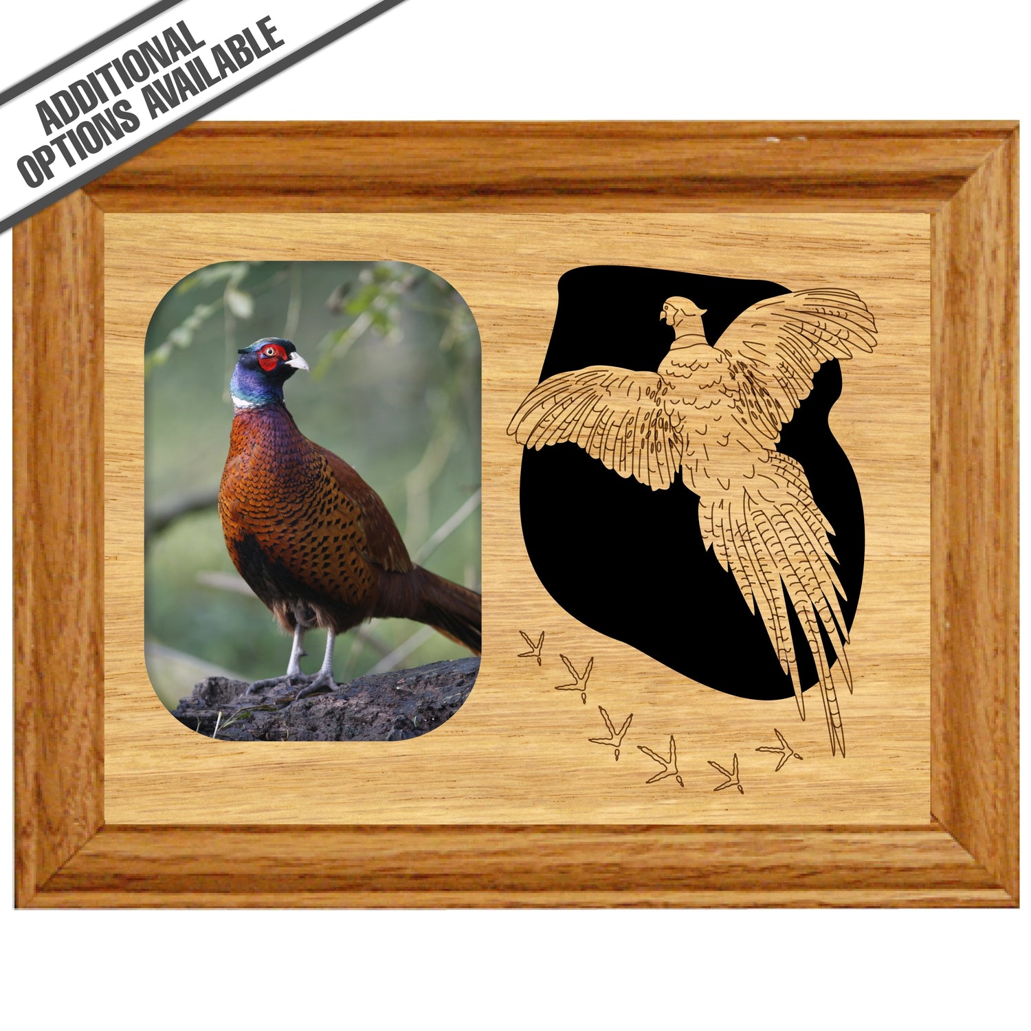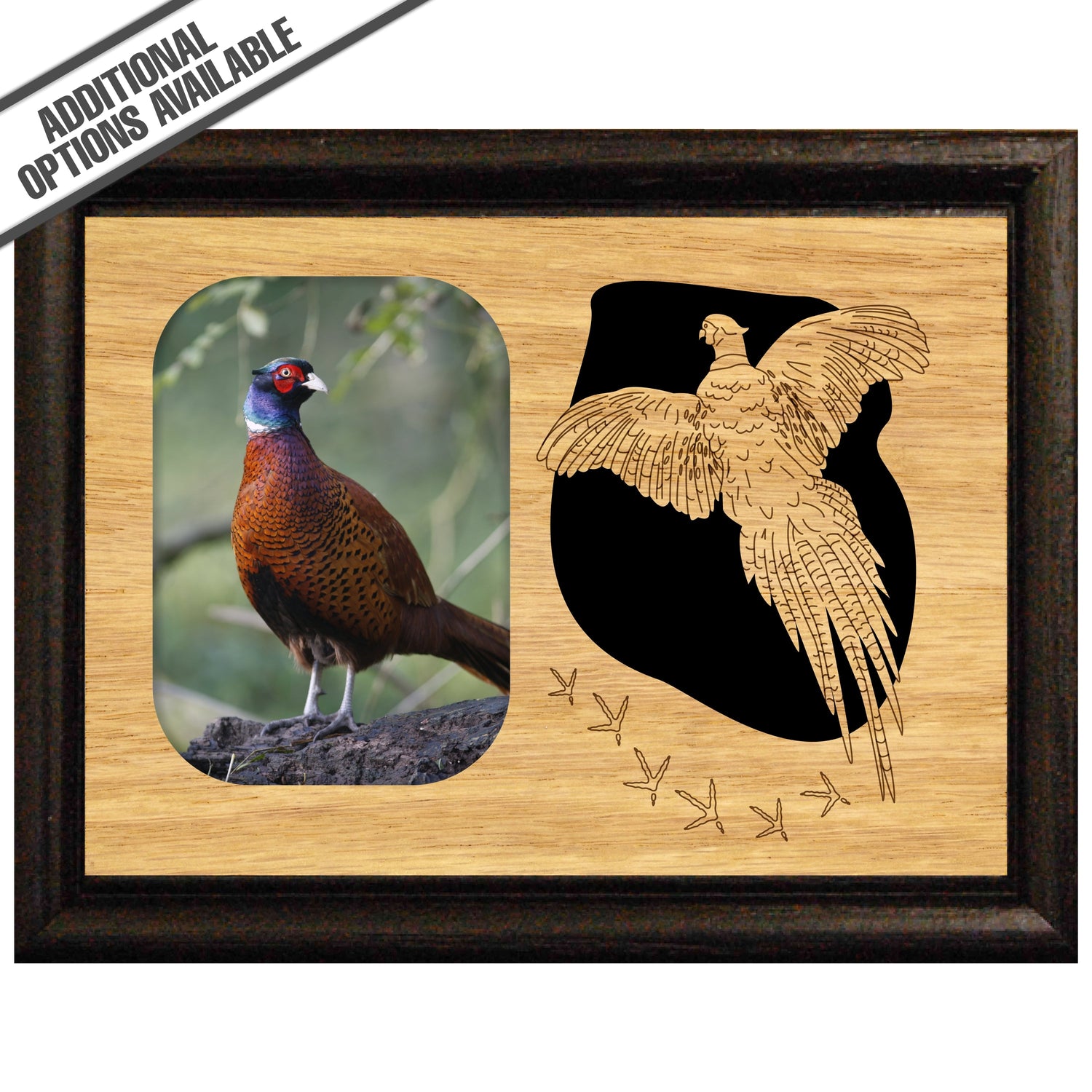Elevate your home decor with the exquisite Pheasant Frame, a stunning wooden frame that beautifully showcases an engraved detailed pheasant. Crafted with precision, this frame adds a touch of nature-inspired elegance to any space, making it perfect for displaying cherished memories or artwork. Its rich wood finish complements a variety of interior styles. Bring the beauty of the outdoors into your home with this unique and stylish piece. Our FrameWorks magnetic mattes are the best way to accentuate any picture. Prefect for a fridge, locker, file cabinet and more, with a strong magnetic backing. Our FrameWorks material is lightweight making it a great souvenir to pack or mail.