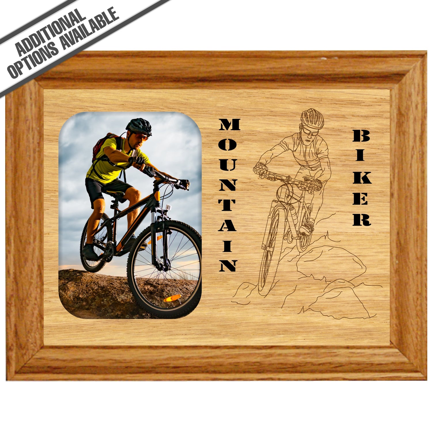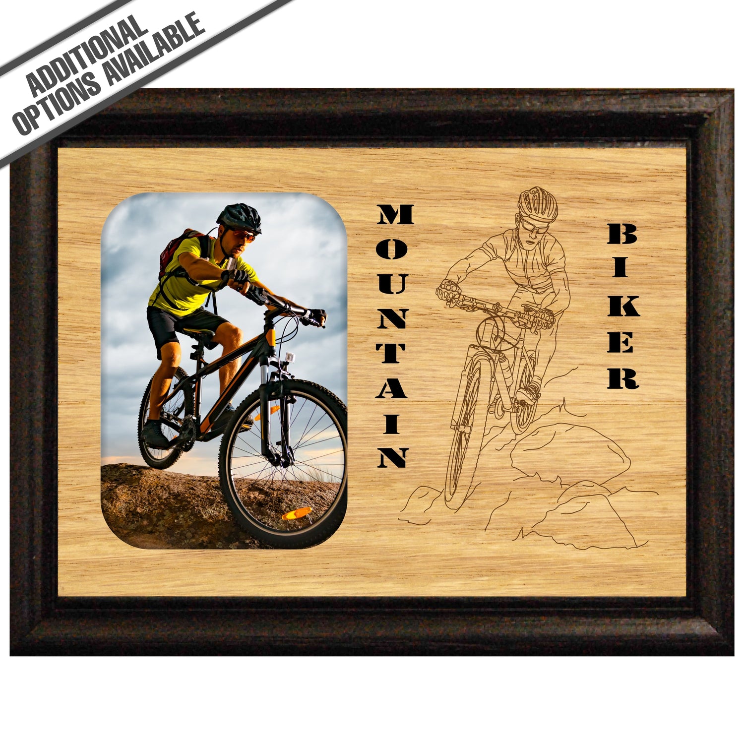 Elevate your space with this stunning wooden frame showcasing a breathtaking engraving of a mountain biker in action. Crafted from high-quality materials, this frame not only enhances the visual appeal of your decor but also celebrates the thrill of mountain biking. Perfect for enthusiasts and adventurers alike, it serves as a daily reminder of the great outdoors and the exhilarating experiences that await. Add this striking piece to your collection and inspire your passion for adventure every day. Our FrameWorks magnetic mattes are the best way to accentuate any picture. Prefect for a fridge, locker, file cabinet and more, with a strong magnetic backing. Our FrameWorks material is lightweight making it a great souvenir to pack or mail.
