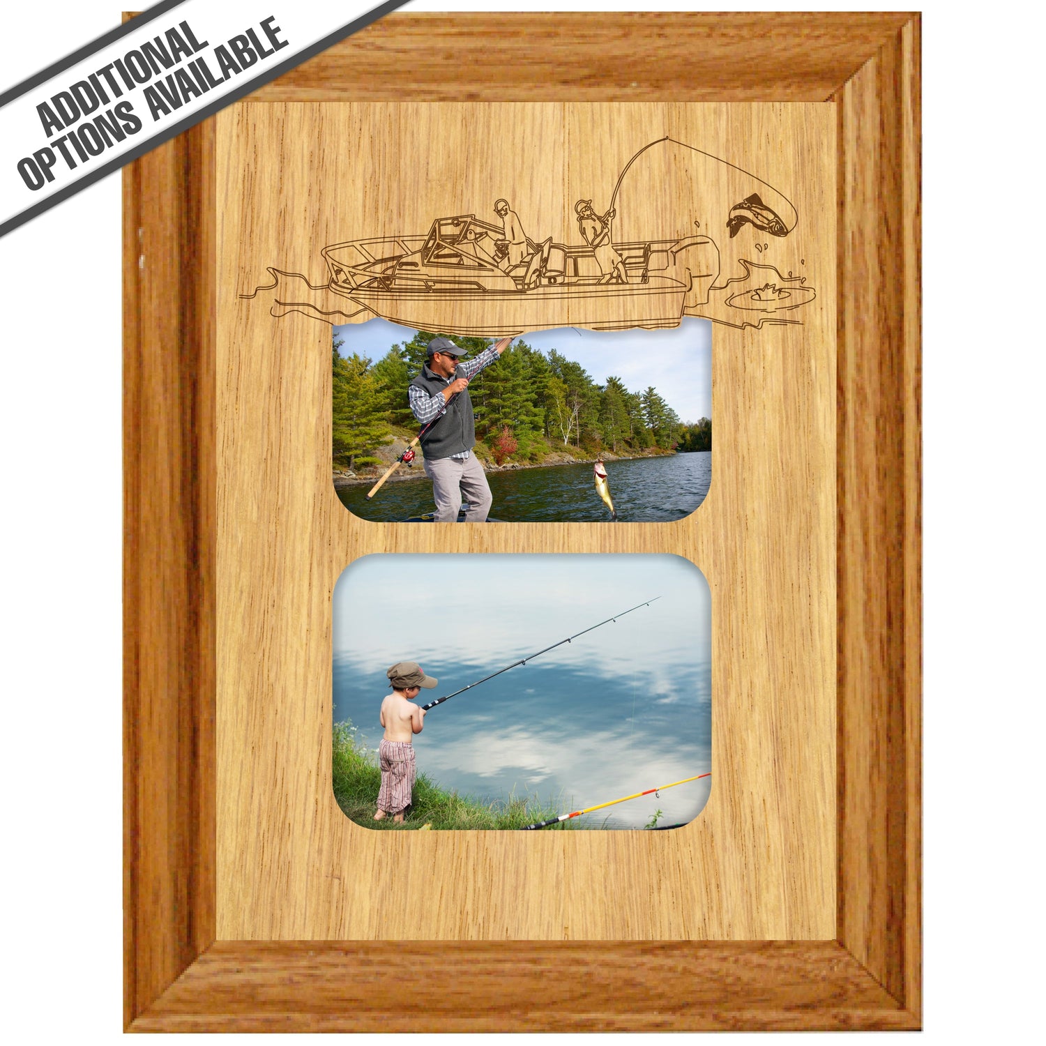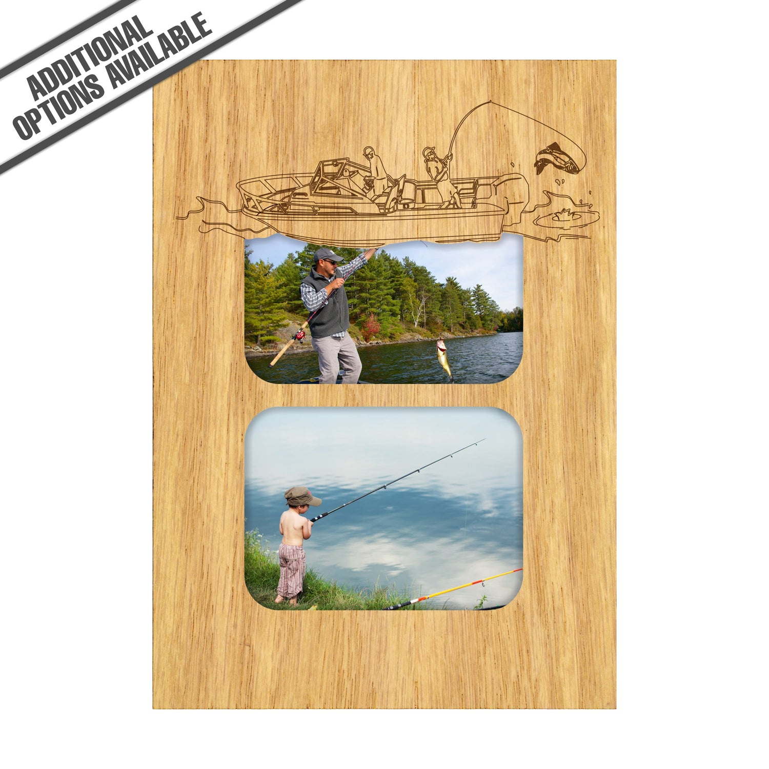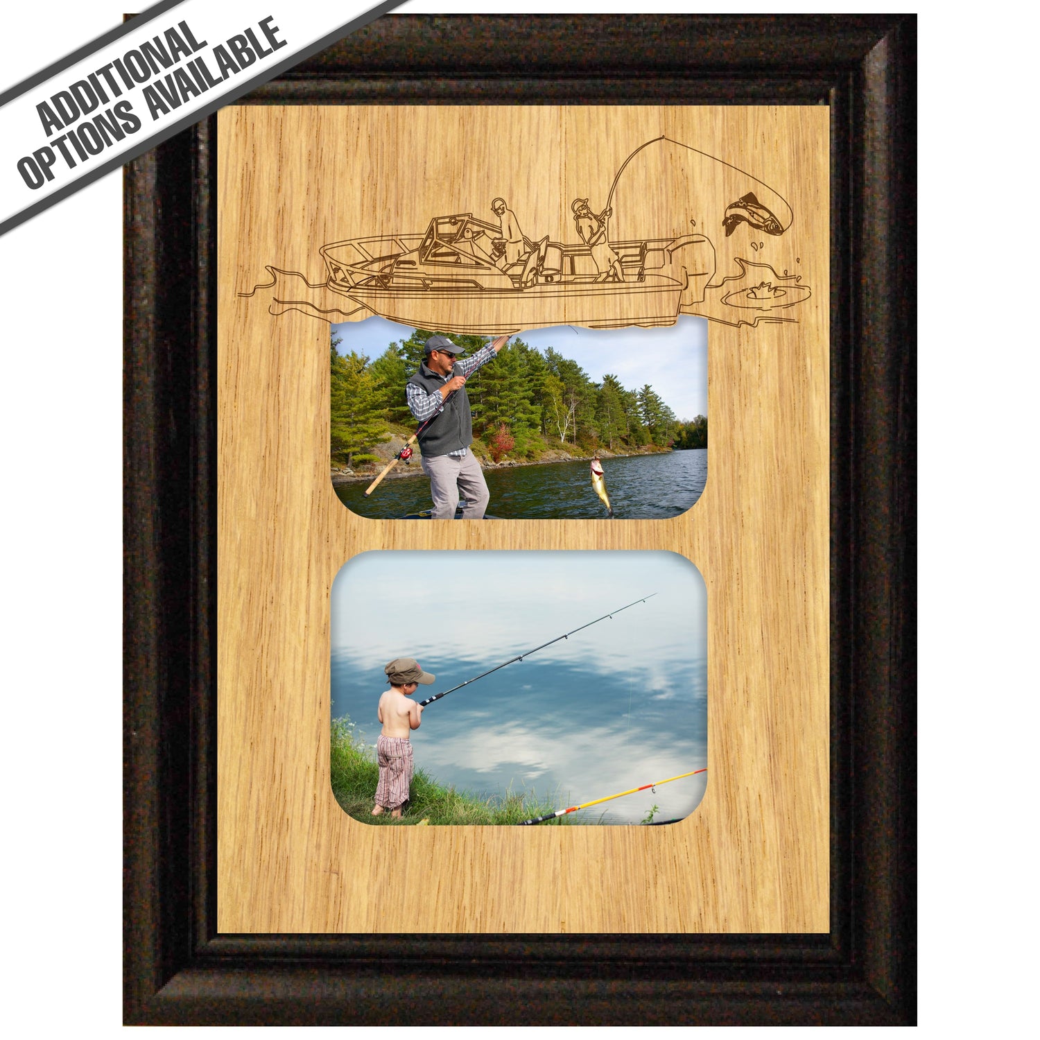 Showcase your love for the great outdoors with the Fishing wooded photo frame, designed to elegantly display two cherished moments of your fishing excursion. Crafted from high-quality wood, this frame not only adds a rustic charm to your decor but also serves as a perfect gift for fishing enthusiasts. Its sturdy construction ensures durability, while the thoughtful design allows you to relive your favorite fishing adventures every day. Elevate your home or office space with this unique piece that captures the essence of nature and the joy of fishing. Our FrameWorks magnetic mattes are the best way to accentuate any picture. Prefect for a fridge, locker, file cabinet and more, with a strong magnetic backing. Our FrameWorks material is lightweight making it a great souvenir to pack or mail.