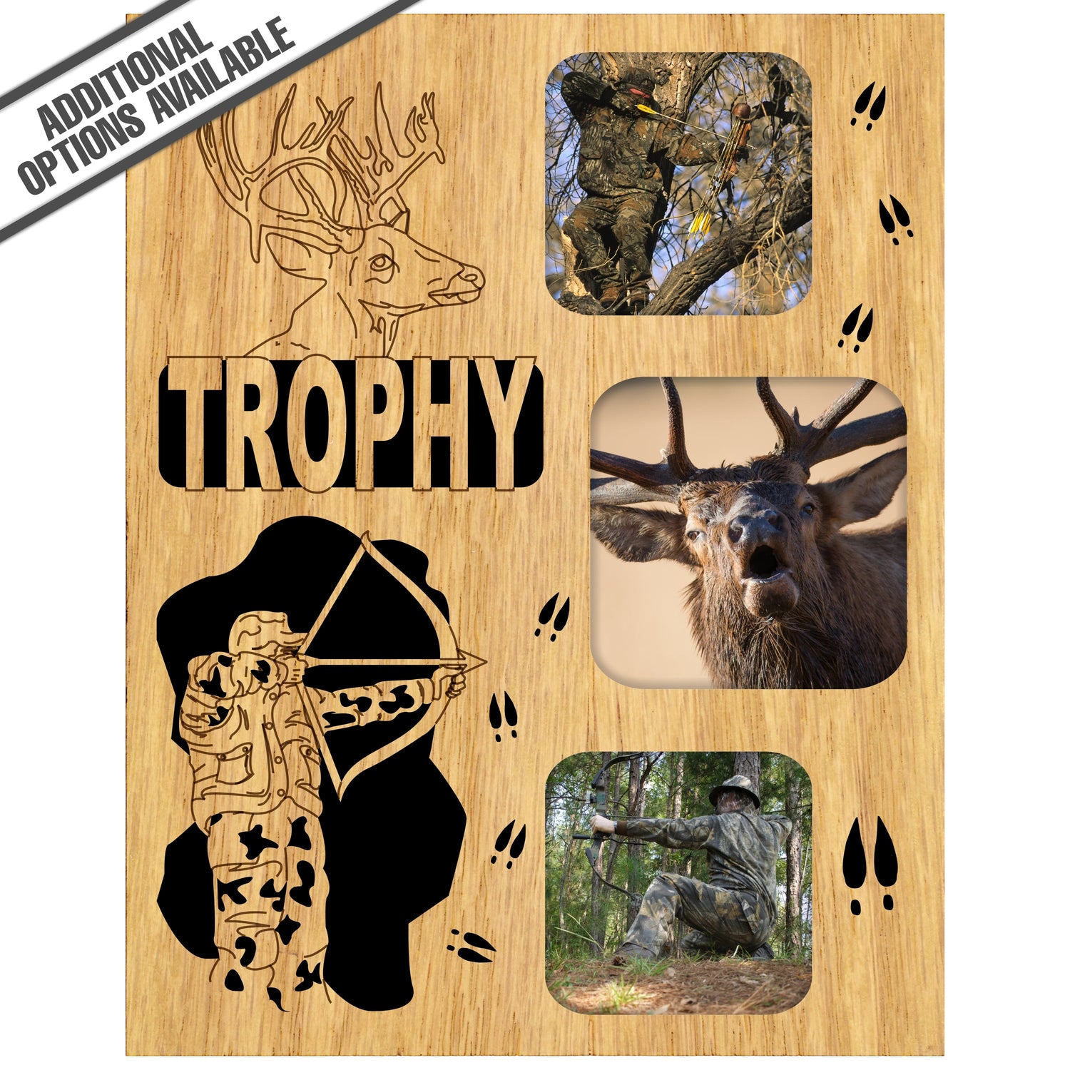 Elevate your hunting achievements with our exquisite Trophy Buck wooden frame. This beautifully crafted frame showcases a detailed engraving of a trophy buck with an engraved bow hunter, making it a perfect tribute to your passion for the outdoors. Ideal for display in your home, office, or hunting lodge, this frame not only celebrates your accomplishments but also adds a touch of rustic elegance to any space. Celebrate your love for nature and hunting with this unique piece that is sure to impress. Our FrameWorks magnetic mattes are the best way to accentuate any picture. Prefect for a fridge, locker, file cabinet and more, with a strong magnetic backing. Our FrameWorks material is lightweight making it a great souvenir to pack or mail.