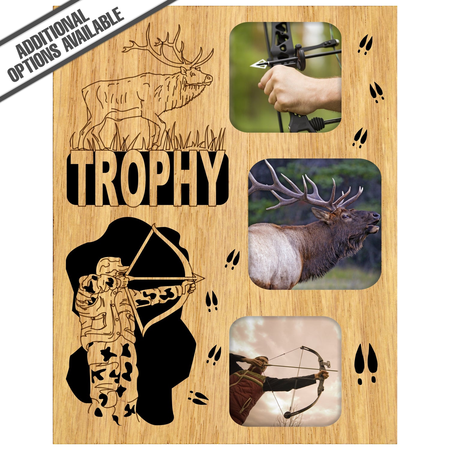 Elevate your hunting achievements with our exquisite Trophy Elk wooden frame. This beautifully crafted frame showcases a detailed engraving of a trophy elk with an engraved bow hunter, making it a perfect tribute to your passion for the outdoors. Ideal for display in your home, office, or hunting lodge, this frame not only celebrates your accomplishments but also adds a touch of rustic elegance to any space. Celebrate your love for nature and hunting with this unique piece that is sure to impress. Our FrameWorks magnetic mattes are the best way to accentuate any picture. Prefect for a fridge, locker, file cabinet and more, with a strong magnetic backing. Our FrameWorks material is lightweight making it a great souvenir to pack or mail.