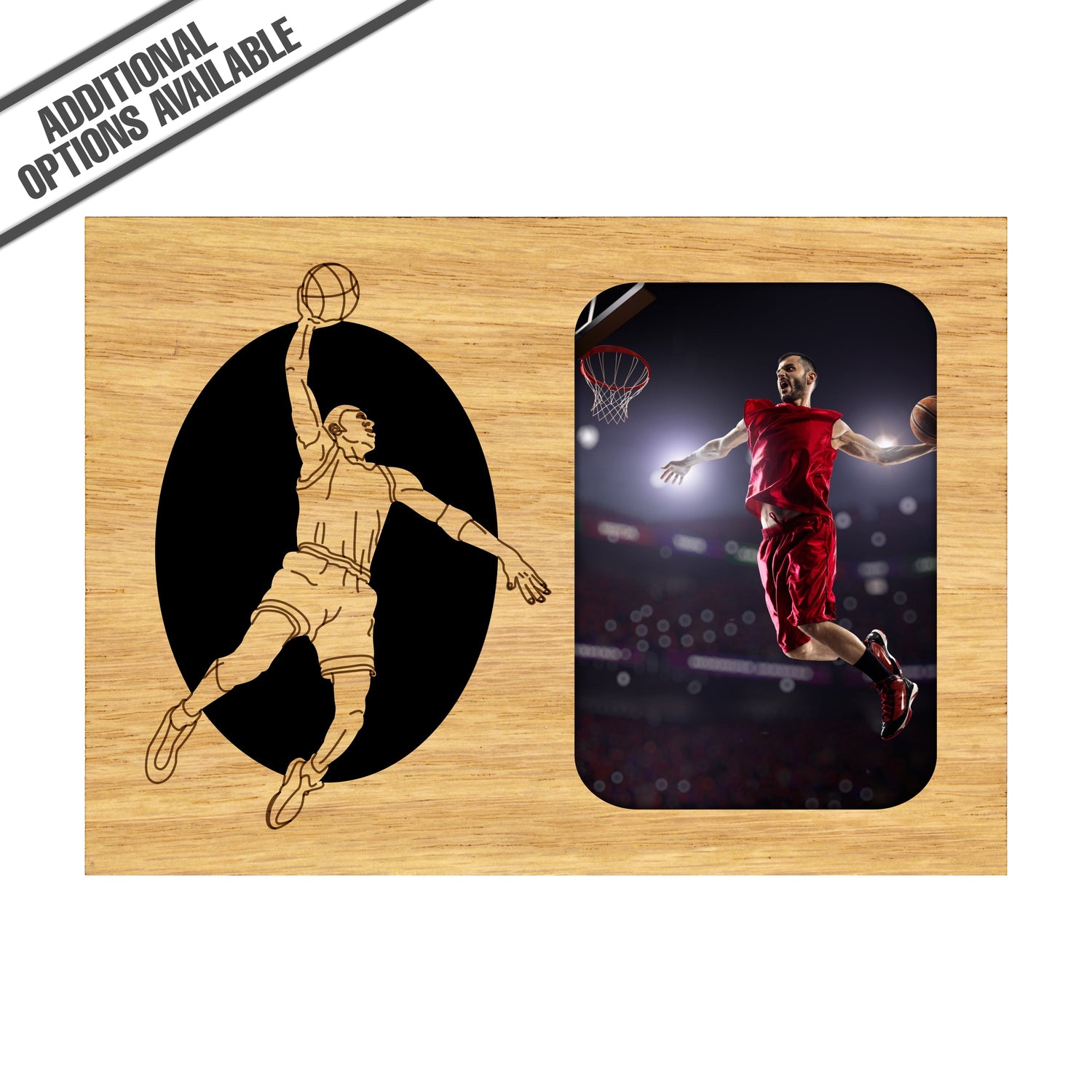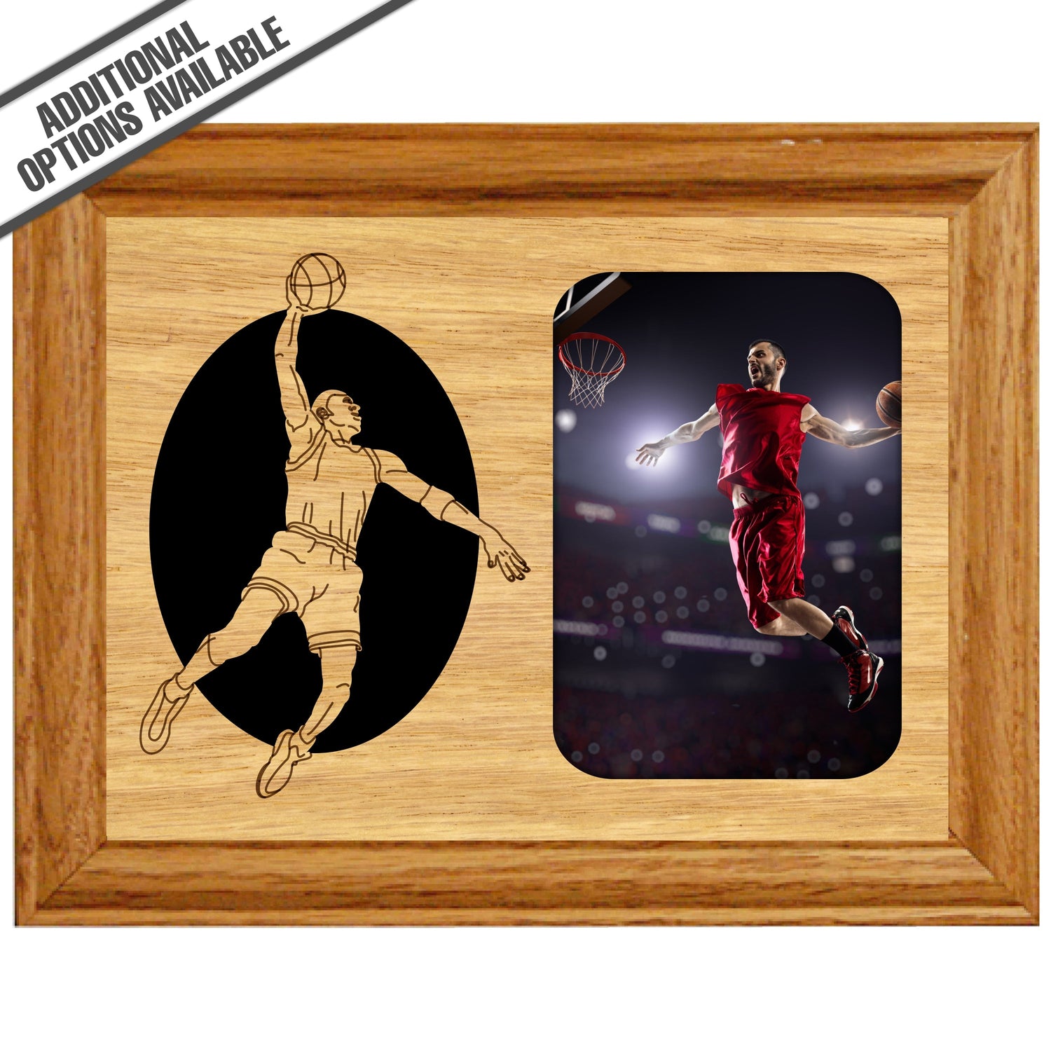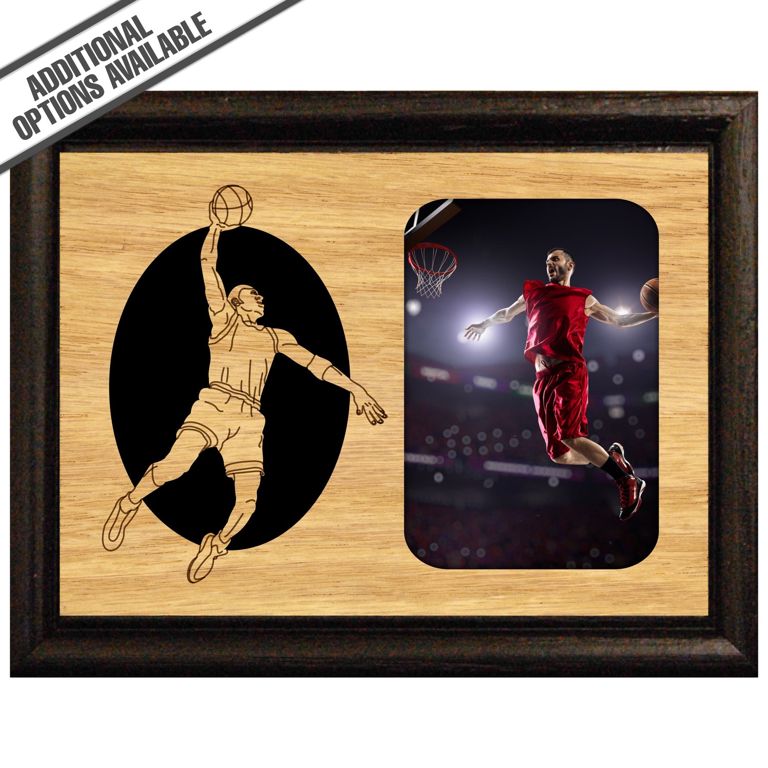 Elevate your space with our Basketball Picture Frame, featuring a stunning engraved image of a basketball player soaring through the air. Crafted from high-quality wood, this frame not only showcases your favorite sports moments but also adds a touch of elegance to any room. Perfect for sports enthusiasts, it makes an ideal gift for players and fans alike, allowing you to celebrate the thrill of the game while preserving cherished memories. Our FrameWorks magnetic mattes are the best way to accentuate any picture. Prefect for a fridge, locker, file cabinet and more, with a strong magnetic backing. Our FrameWorks material is lightweight making it a great souvenir to pack or mail.