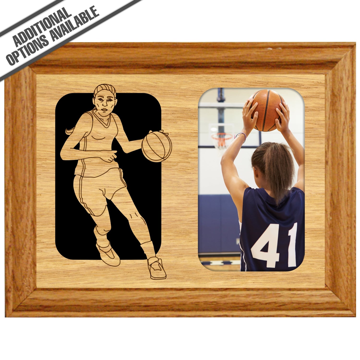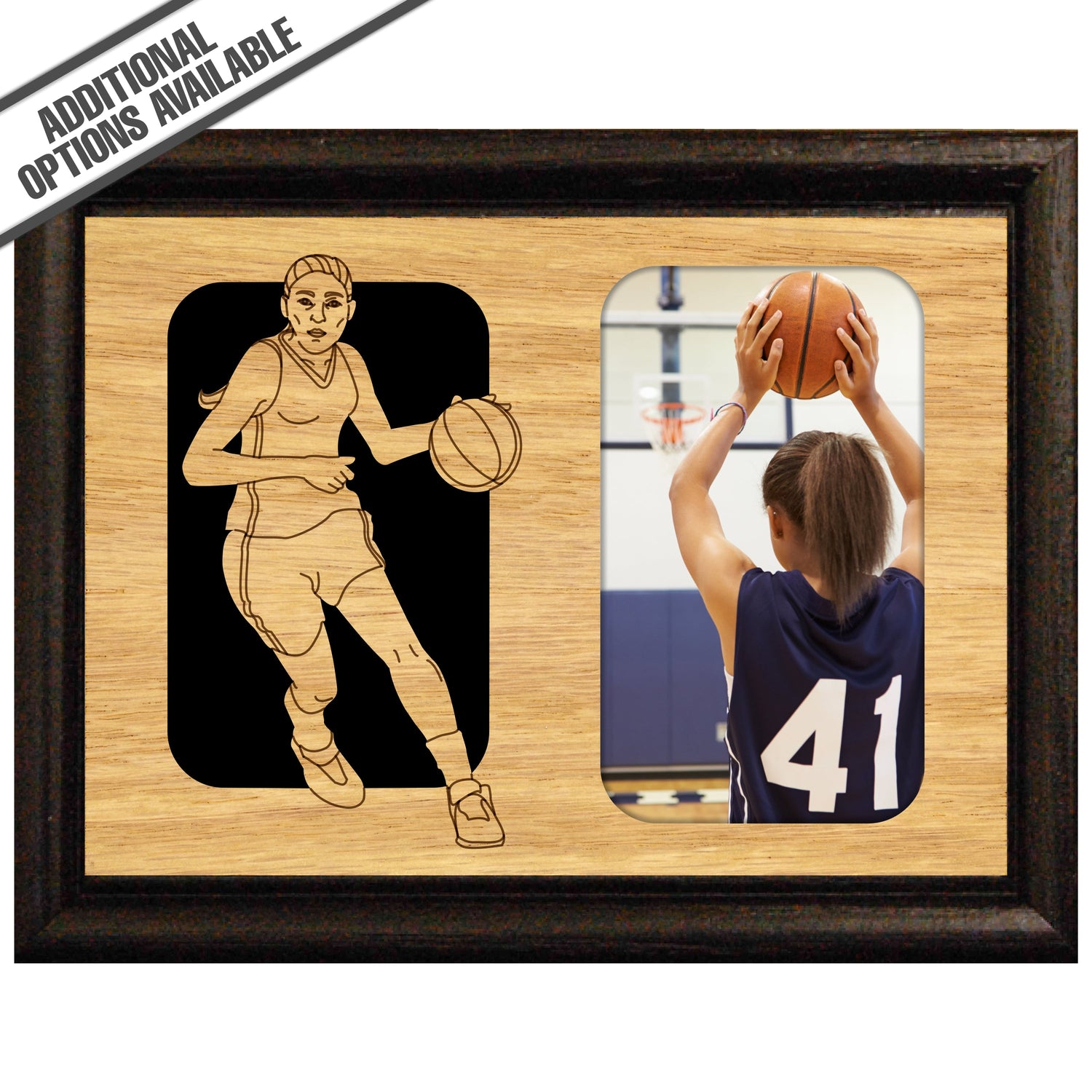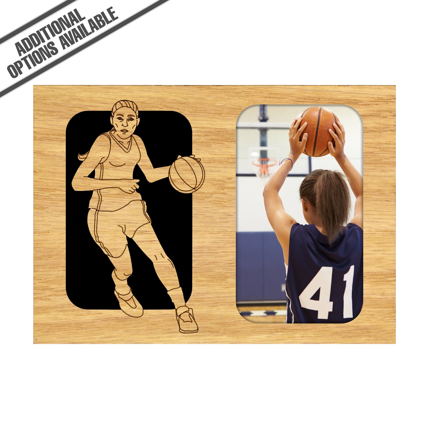 Celebrate the spirit of female empowerment and athleticism with our exquisite Female Basketball picture frame. Crafted from high-quality wood, this elegant frame features a dynamic design showcasing a basketball player in action, perfectly complementing your cherished photo. Ideal for honoring achievements, this frame not only enhances your decor but also serves as a constant reminder of dedication and passion for the game. Perfect for gifting or personal use, it’s a must-have for any basketball enthusiast looking to showcase their love for the sport. Our FrameWorks magnetic mattes are the best way to accentuate any picture. Prefect for a fridge, locker, file cabinet and more, with a strong magnetic backing. Our FrameWorks material is lightweight making it a great souvenir to pack or mail.