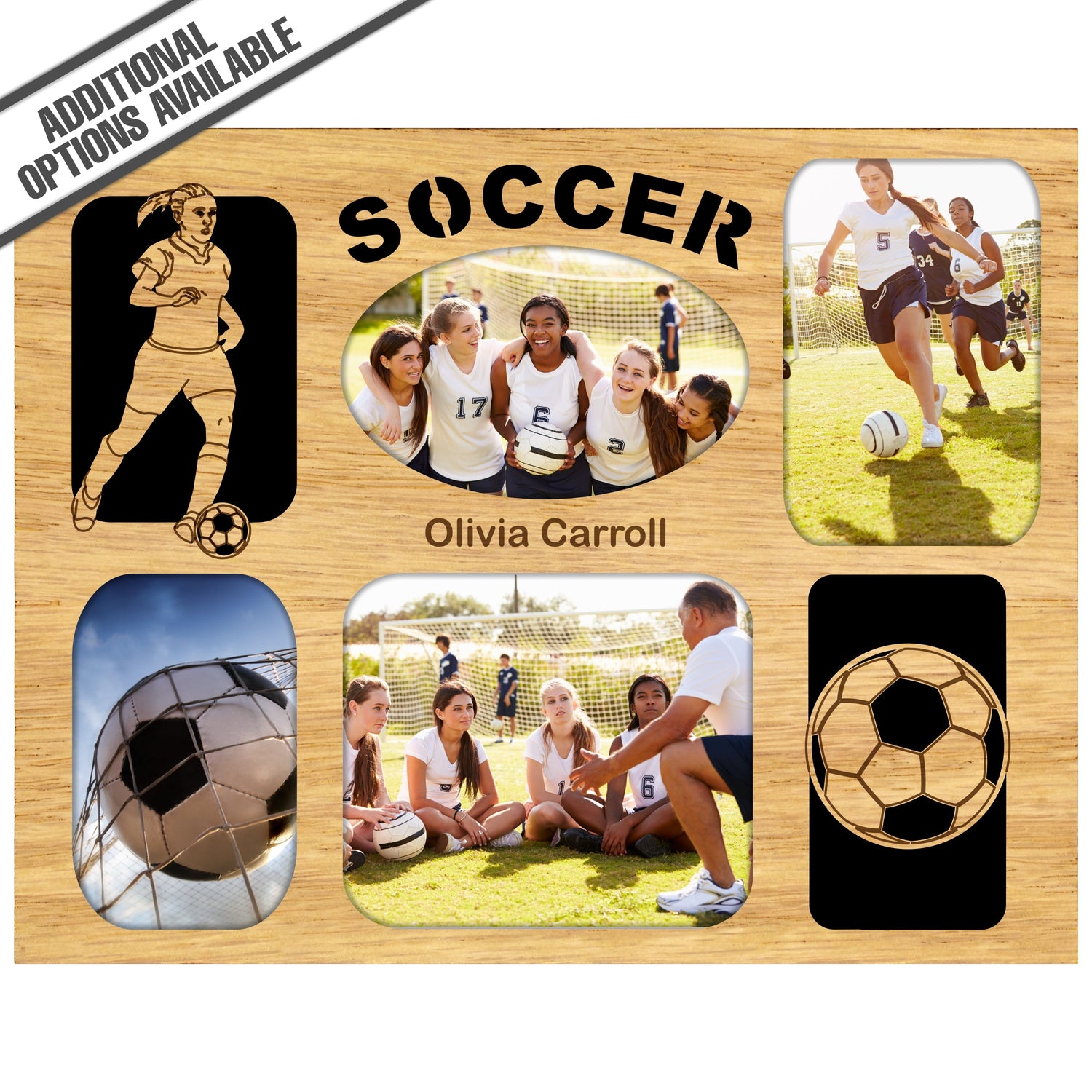 Celebrate your child's passion for soccer with our beautifully crafted Female Soccer picture frame. This elegant wooden frame is a perfect addition to any sports enthusiast's room. Personalize with that the name of your choice. Its durable construction ensures that your cherished memories are preserved for years to come, while the classic design complements any decor. Gift this frame to a young athlete or use it to display your own favorite soccer moments, and let the spirit of the game shine in your home. Our FrameWorks magnetic mattes are the best way to accentuate any picture. Prefect for a fridge, locker, file cabinet and more, with a strong magnetic backing. Our FrameWorks material is lightweight making it a great souvenir to pack or mail.
