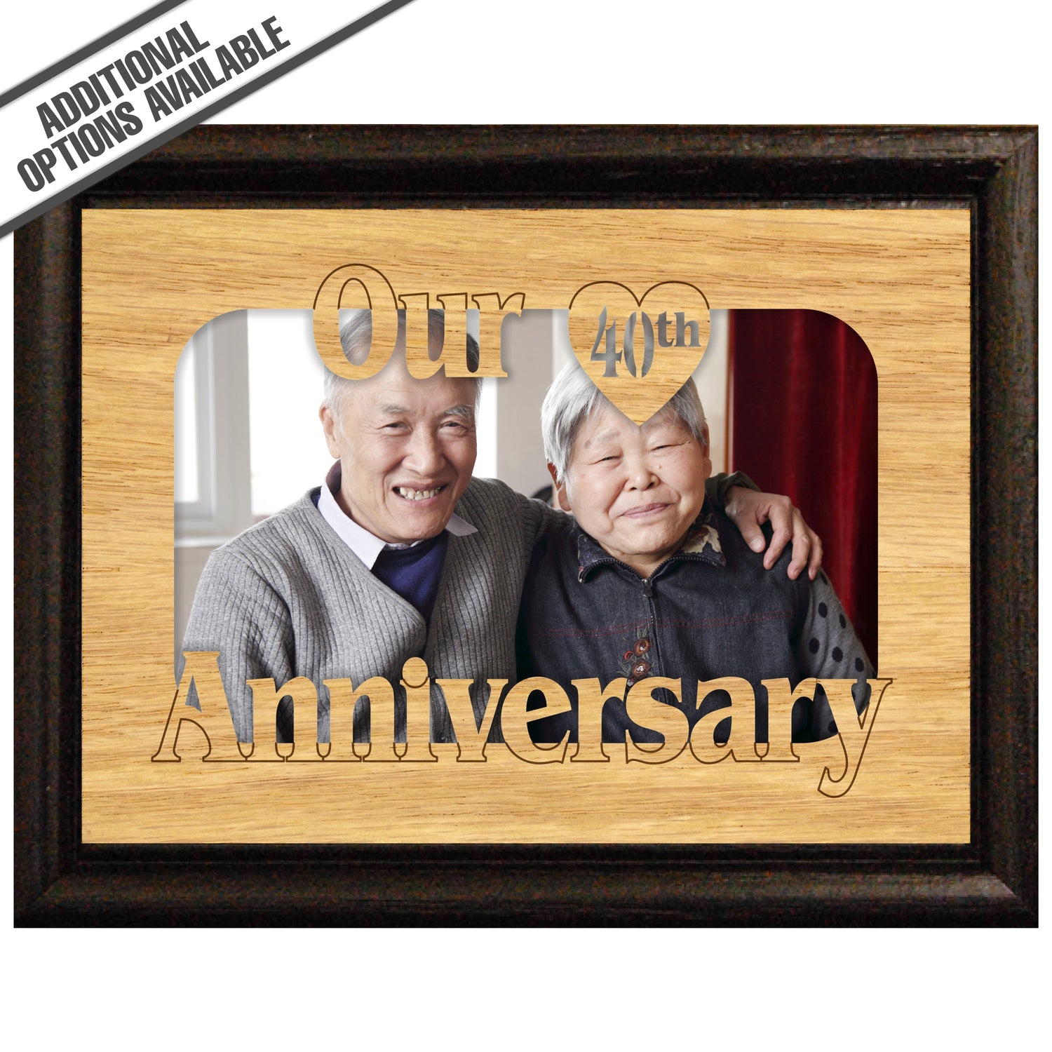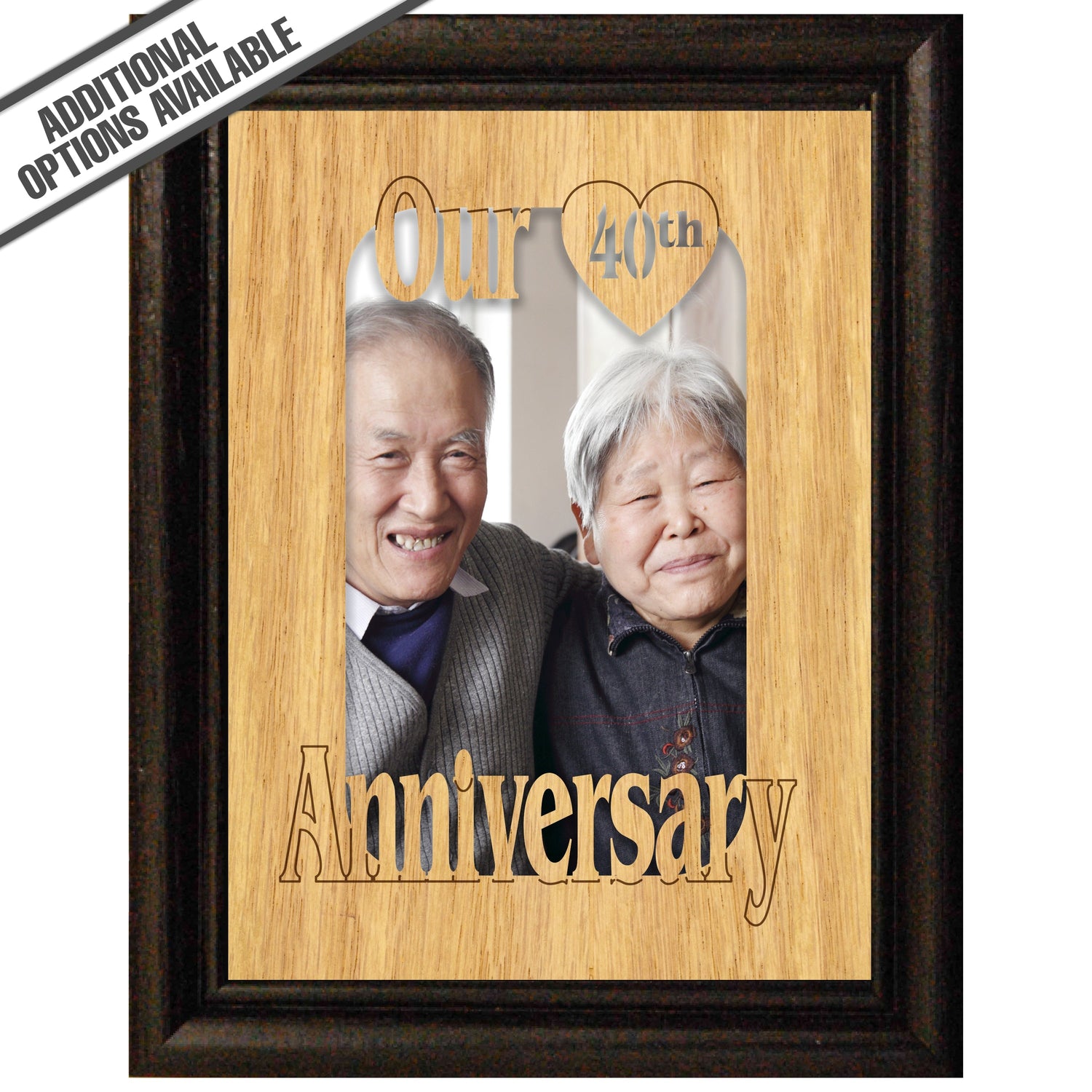 Celebrate a milestone of love with our beautifully crafted wooden frame, elegantly inscribed with "Our 40th Anniversary." This timeless piece not only serves as a stunning display for your cherished memories but also symbolizes the enduring bond you share. Made from high-quality wood, it adds a touch of warmth and sophistication to any decor. Perfect for gifting or as a personal keepsake, this frame is a heartfelt reminder of forty wonderful years together. Make your anniversary unforgettable with this exquisite addition to your home. Our FrameWorks magnetic mattes are the best way to accentuate any picture. Prefect for a fridge, locker, file cabinet and more, with a strong magnetic backing. Our FrameWorks material is lightweight making it a great souvenir to pack or mail.