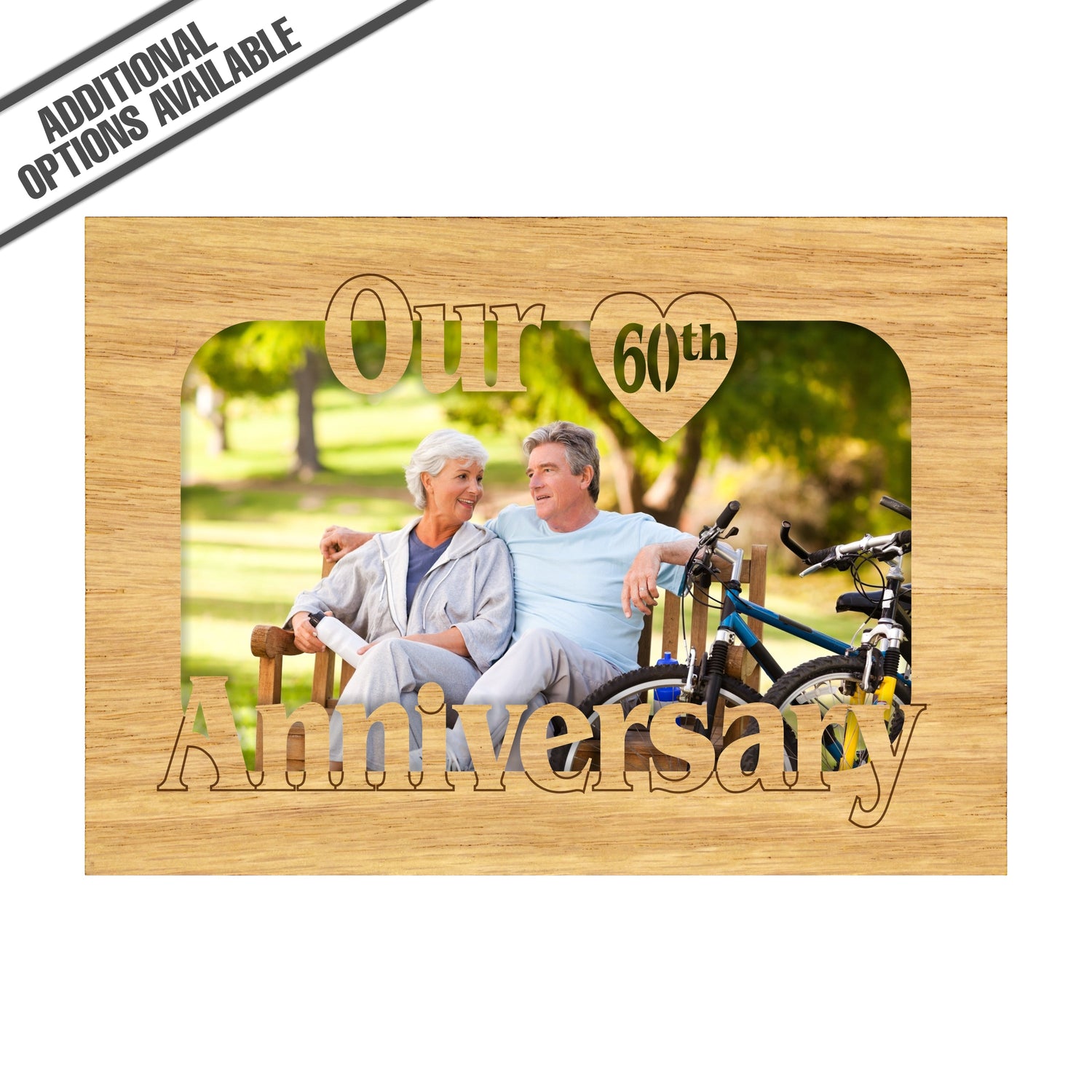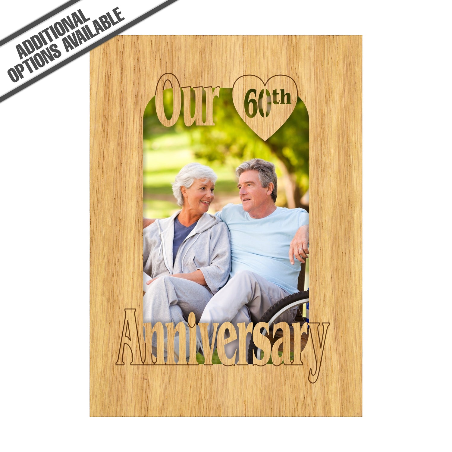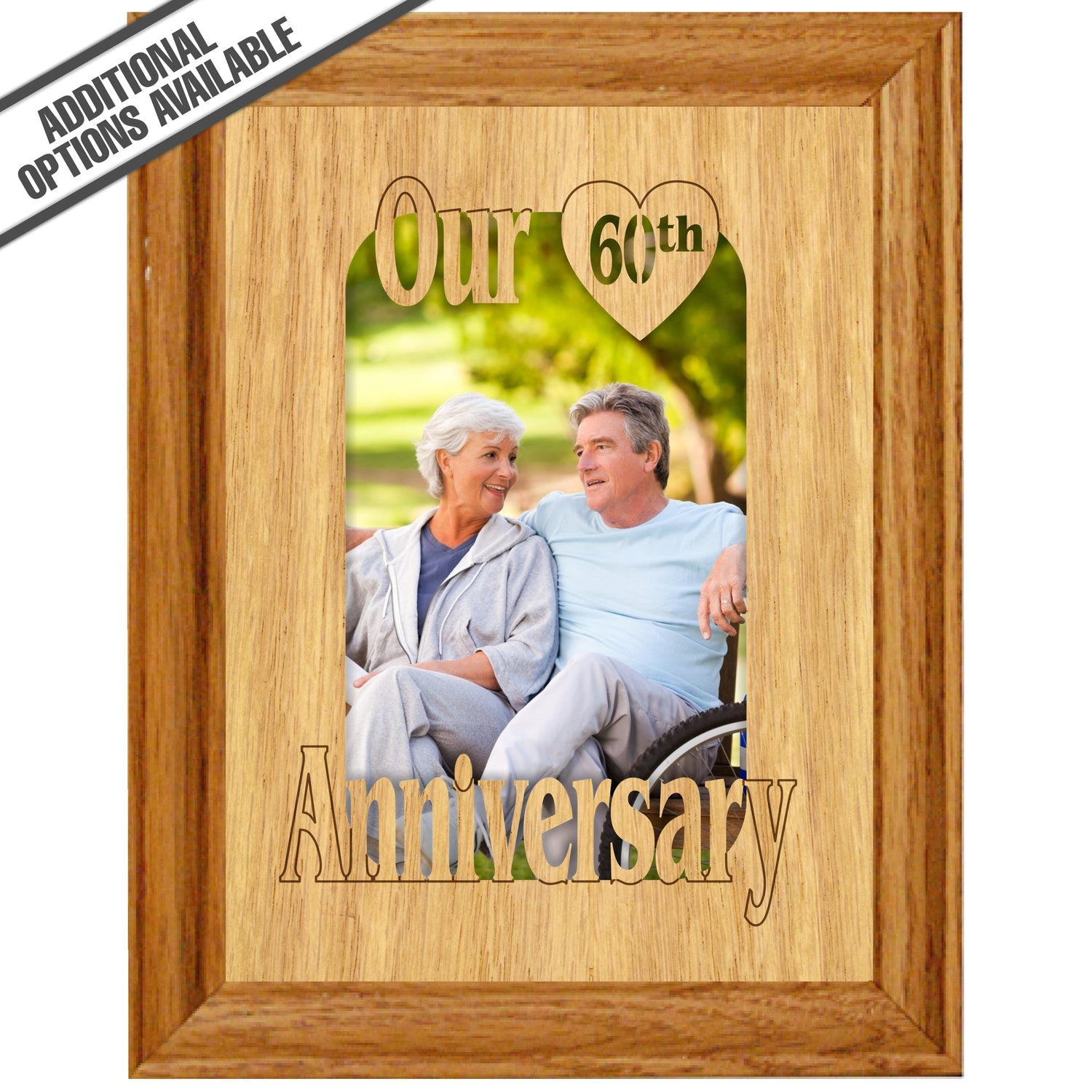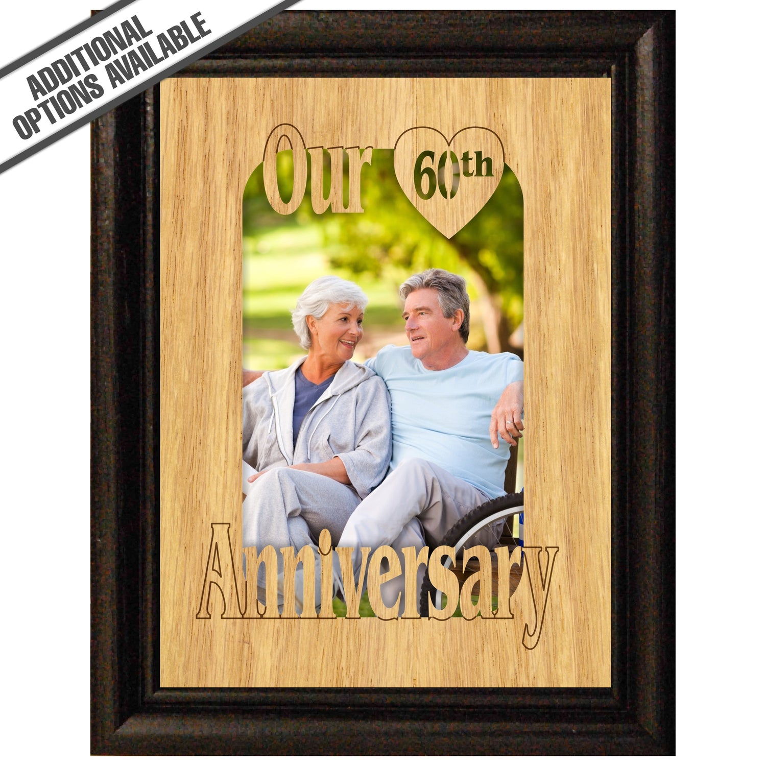 Celebrate a milestone of love with our beautifully crafted wooden frame, elegantly inscribed with "Our 60th Anniversary." This timeless piece not only serves as a stunning display for your cherished memories but also symbolizes the enduring bond you share. Made from high-quality wood, it adds a touch of warmth and sophistication to any decor. Perfect for gifting or as a personal keepsake, this frame is a heartfelt reminder of sixty wonderful years together. Make your anniversary unforgettable with this exquisite addition to your home. Our FrameWorks magnetic mattes are the best way to accentuate any picture. Prefect for a fridge, locker, file cabinet and more, with a strong magnetic backing. Our FrameWorks material is lightweight making it a great souvenir to pack or mail.