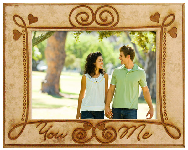 The two of you are inseparable. Celebrate the relationship between you with this engraved wooden frame. Featuring a rustic heart and scroll pattern, the custom picture frame proudly shares the love and friendship between the two of you. Available in horizontal or vertical orientations and in four sizes, this is a perfect frame for men, women, and kids of all ages. It could even be a perfect dog owner gift with a photo of owner and beloved pet. The possibilities are endless with this cute picture frame. Item# flw0003